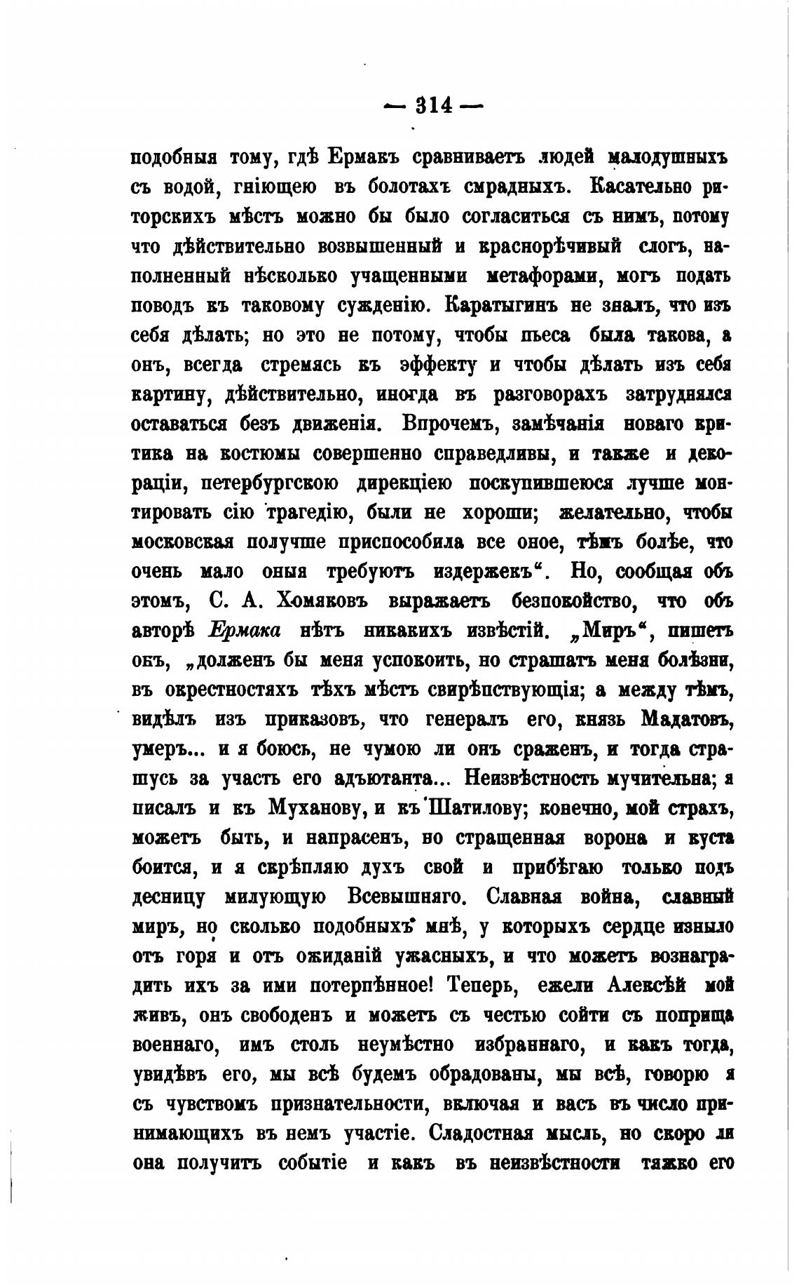 этомъ, С. А. Хомяковъ выражаеть безповойство, что объ