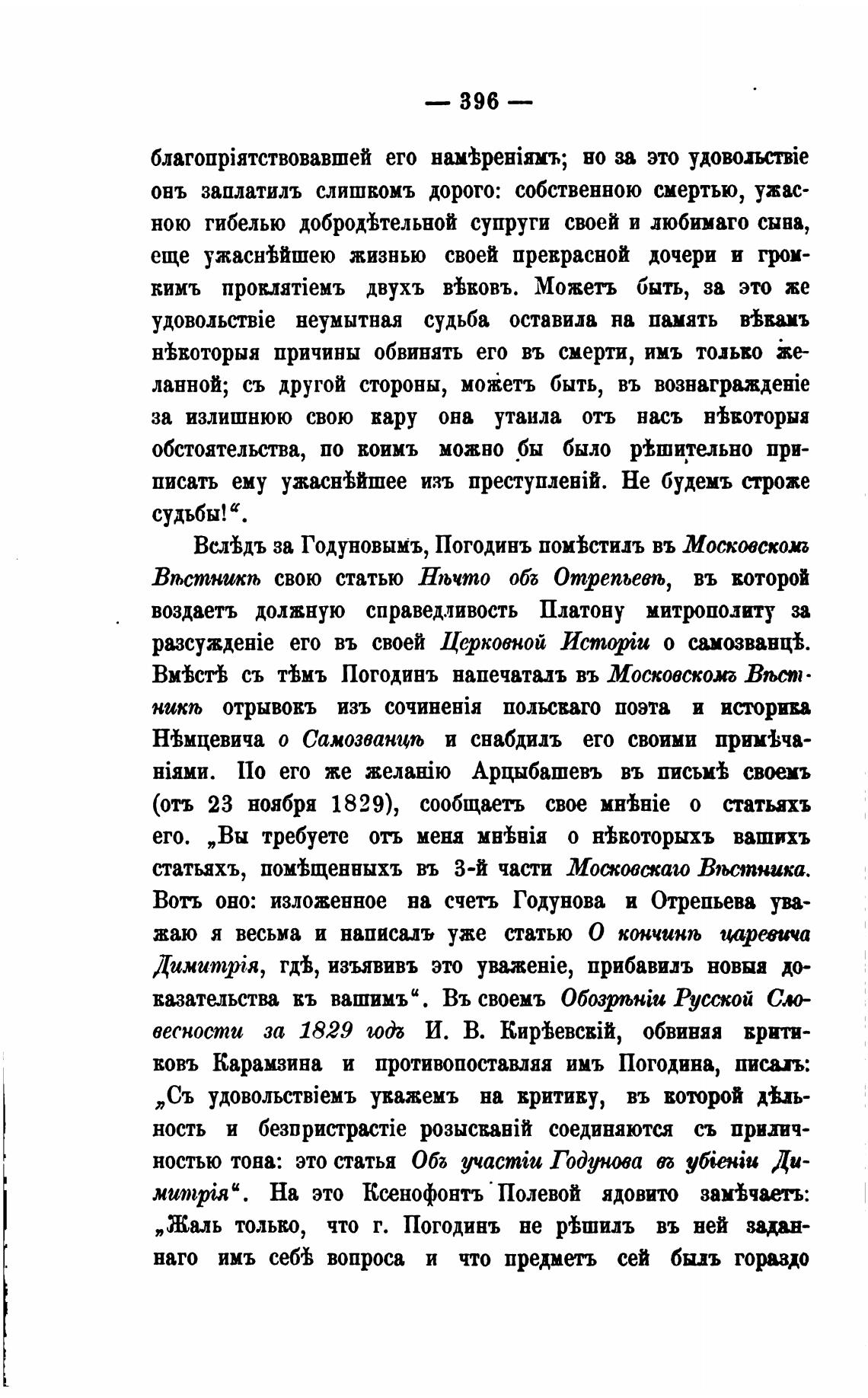 вовь Карамзина и противопоставляя имъ Погодина, писал:
