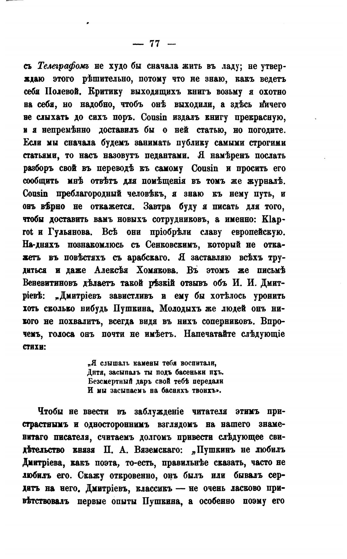 Втельство вваи П. А. Вяземсваго: „Пушкинъ не обиль
