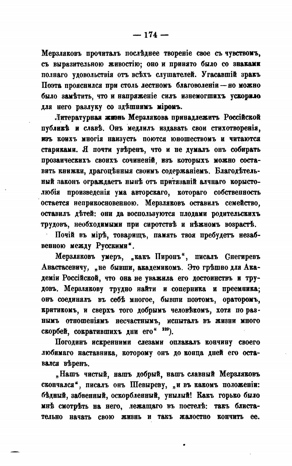 Мерзляковъ умерь, „вавъ Пироне, писалъ Снегиревъ