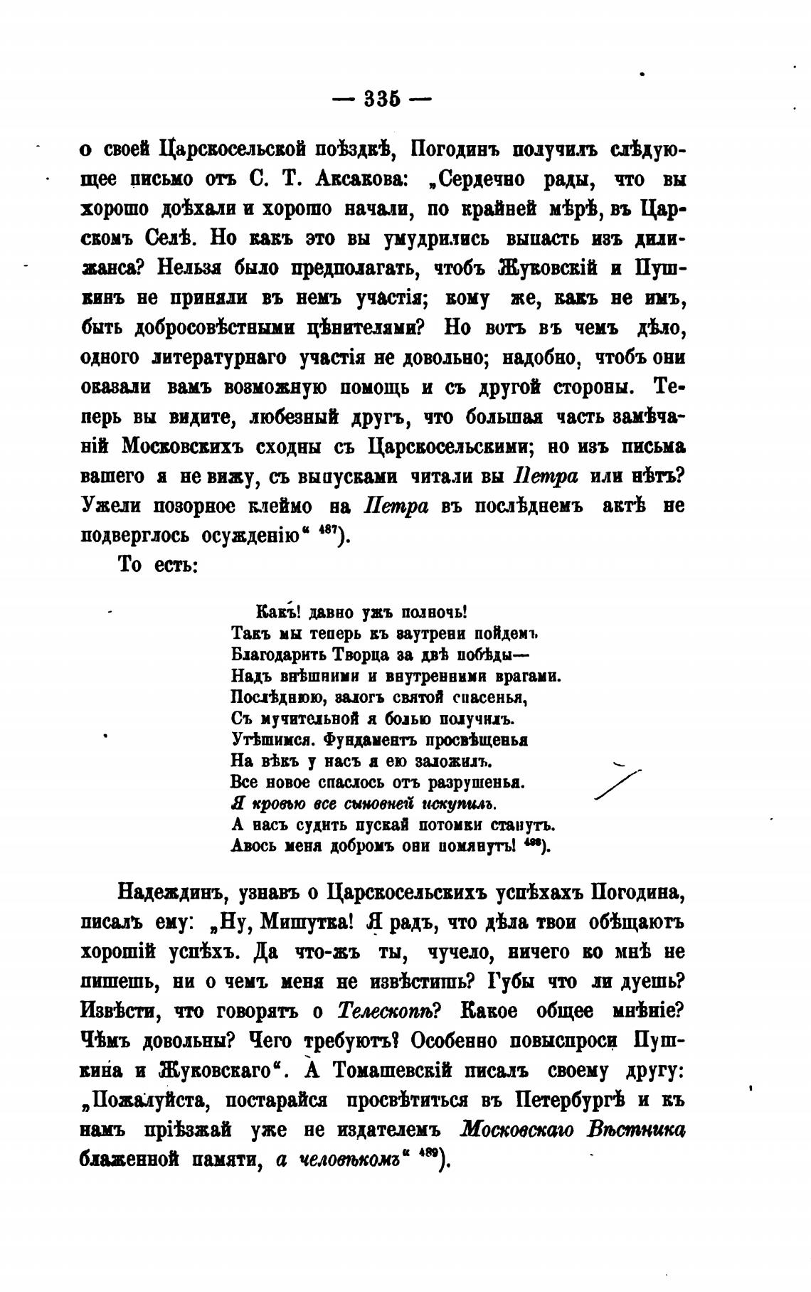 Надеждинъ, узнавъ о Царскосельсвихъ устьхахъ Погодина,
