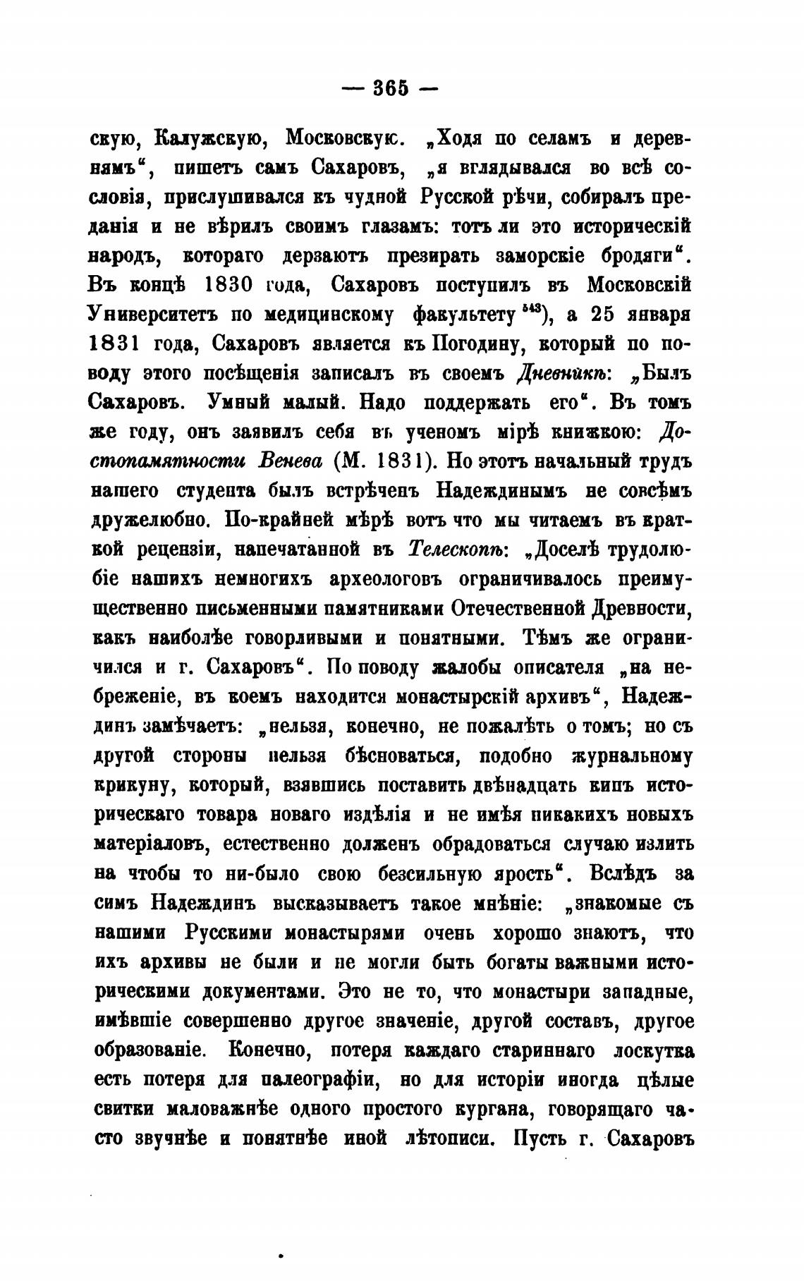 1831 года, Сахаровъ является кь Погодину, воторый по по-