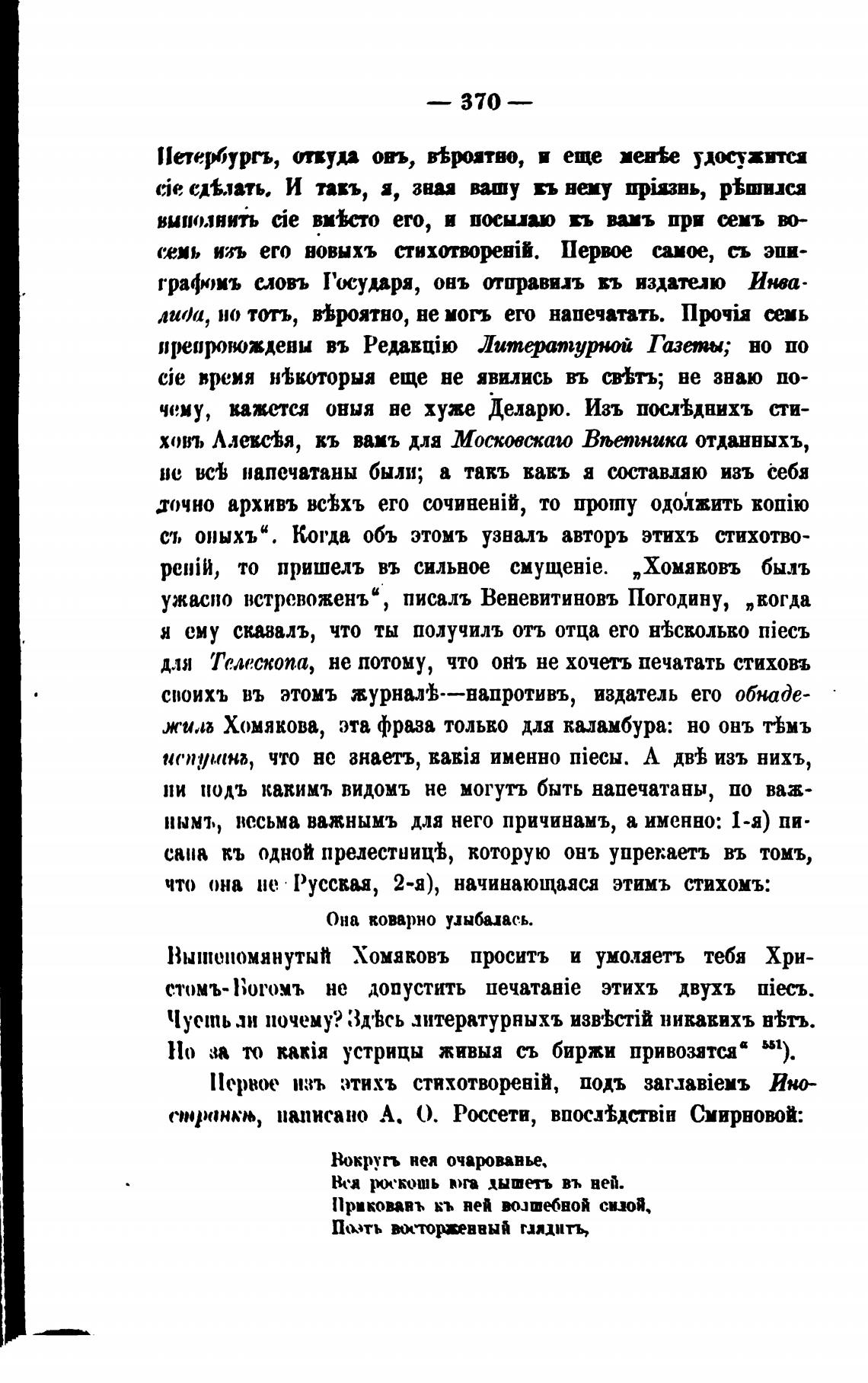 споранкњ, паписапо А. Россети, Смирновой: