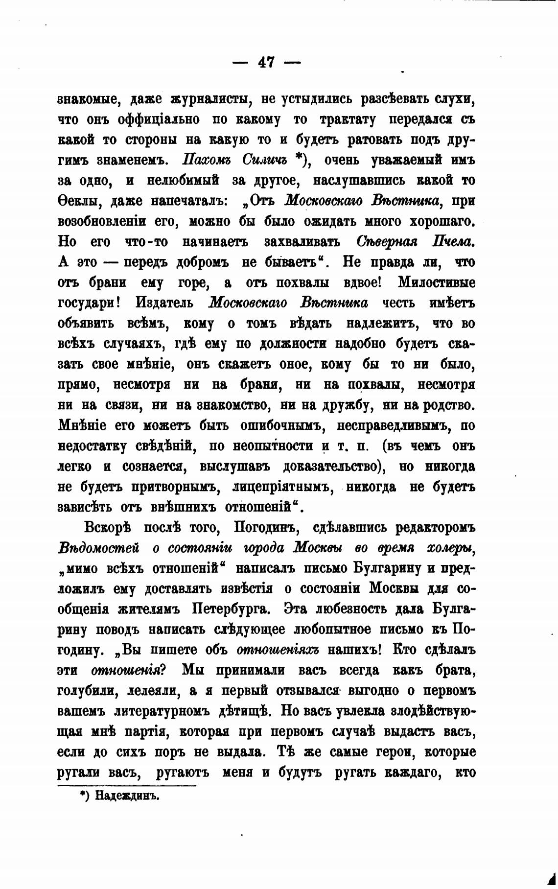 „мимо всНъ написалъ письмо Булгарину и пред-