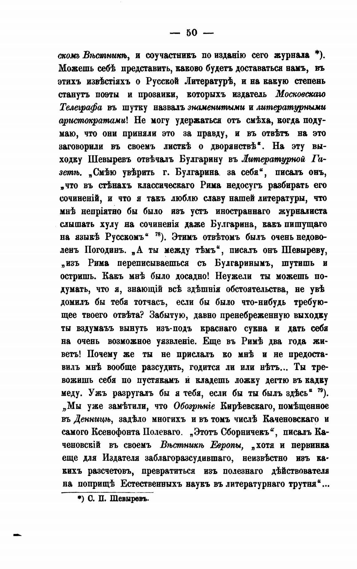 ходку Шевыревъ отйча.лъ Булгарину въ Литературной Та-
