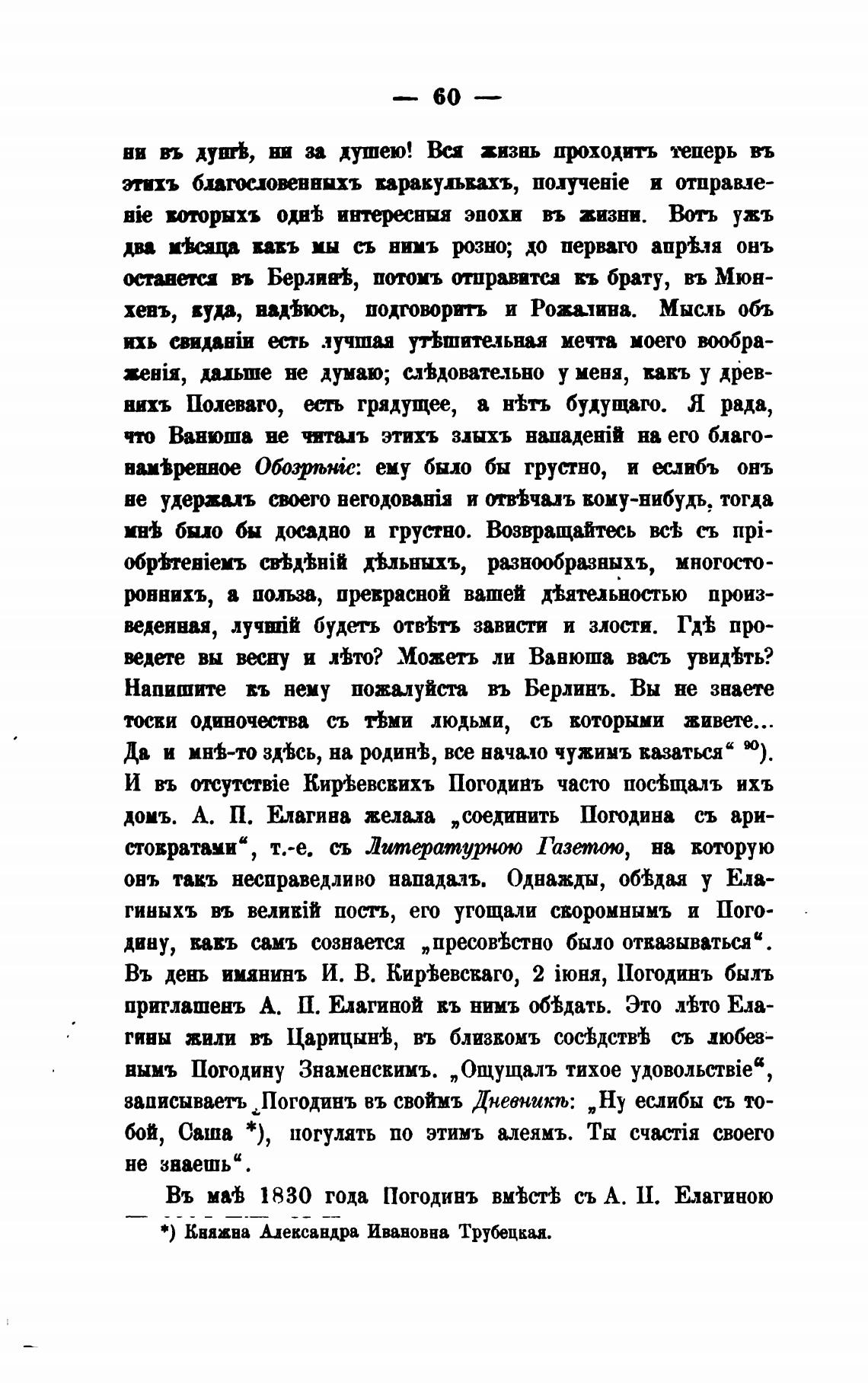 Въ магЬ 1830 года Погодивъ съ А. 1I. Елагиною