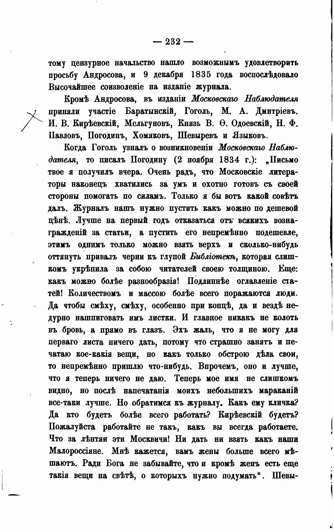Когда Гоголь узналъ о Московскаео Наблю-