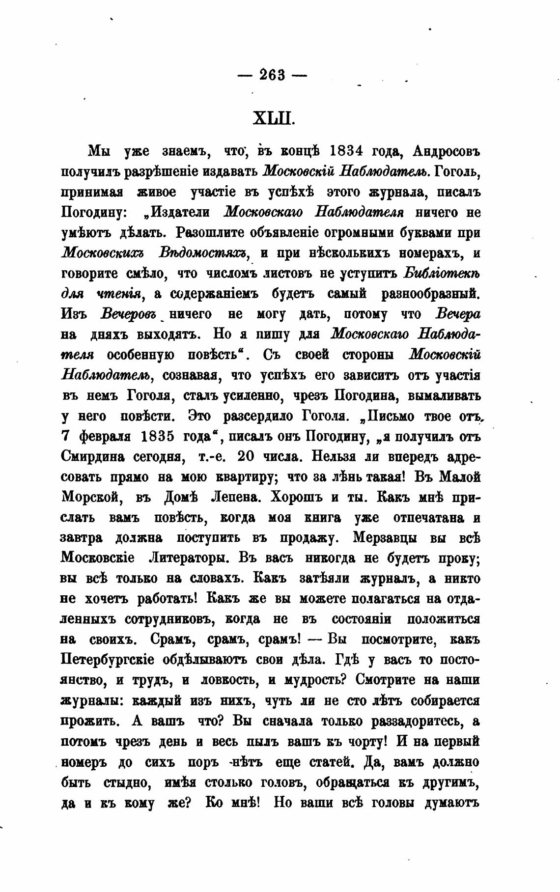у него пойсти. Это разсердило Гоголя. „Письмо твое отъ.