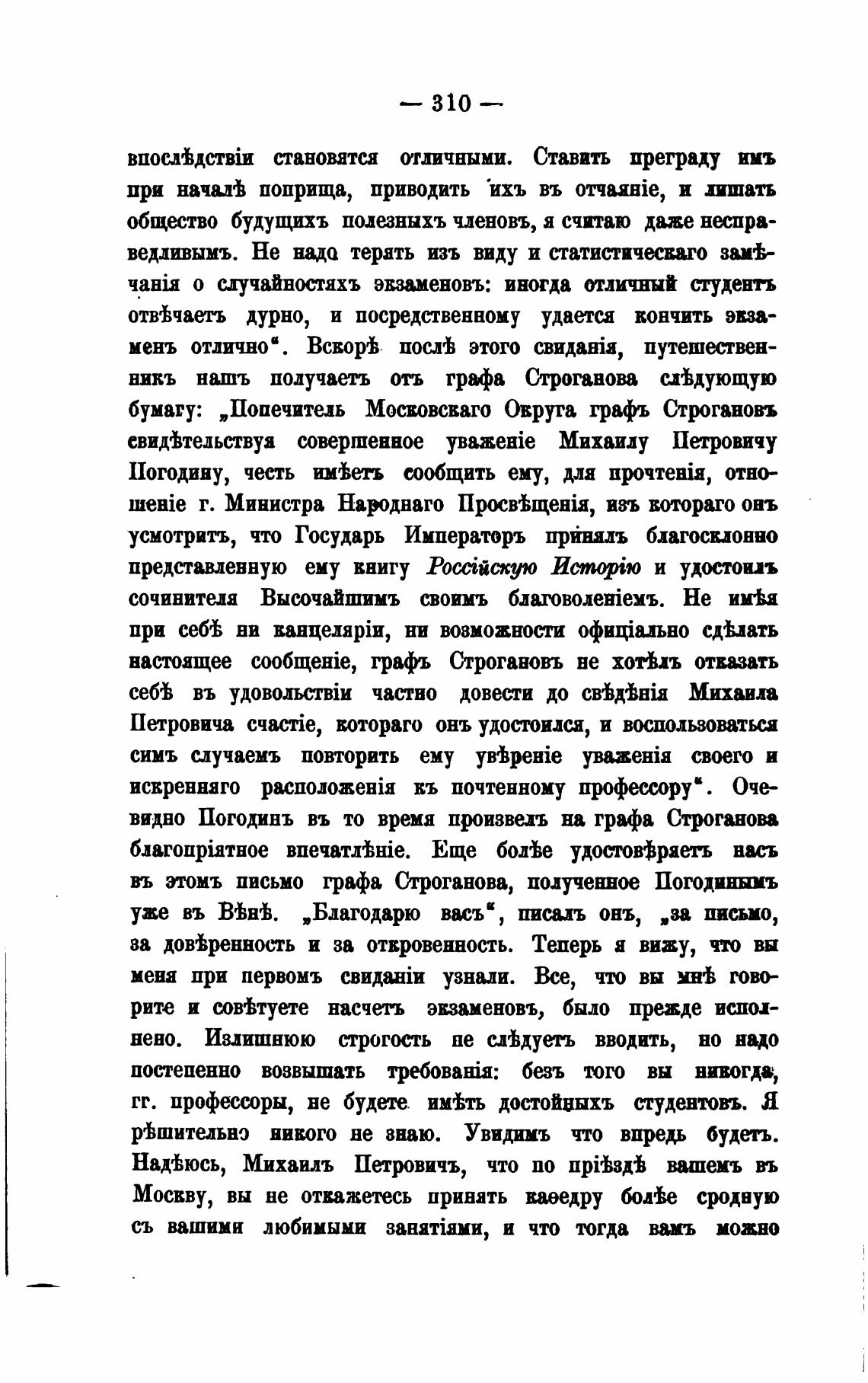 видно Погодинъ въ то время произвел на графа Строганова