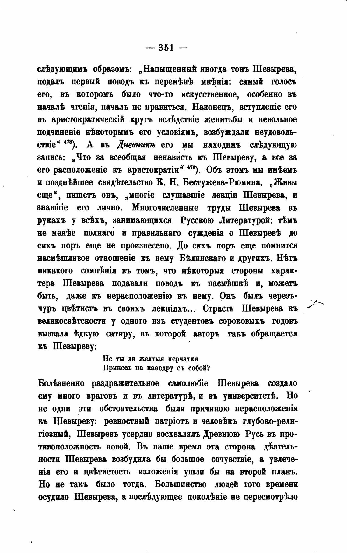 слЫующииъ образомъ: „Напыщенный иногда тонь Шевырева,