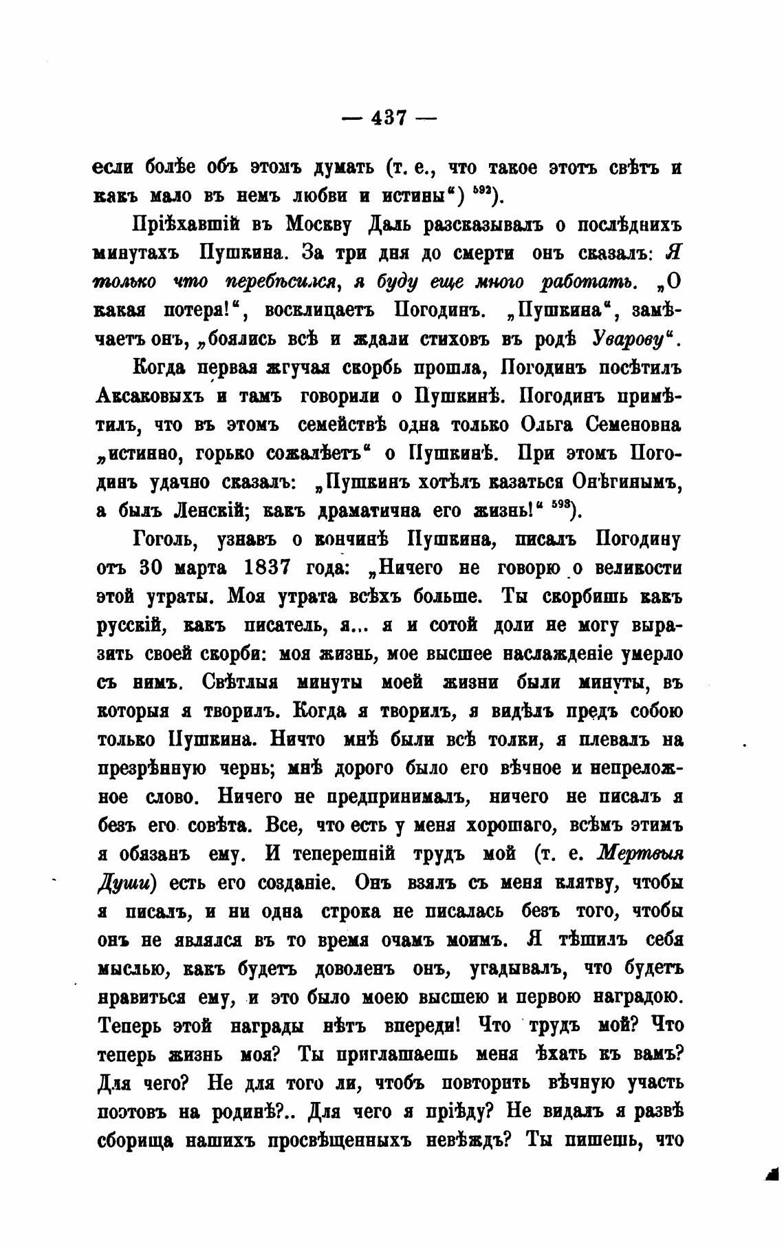 Гоголь, узнавъ о вончинВ Пушкина, писалъ Погодину