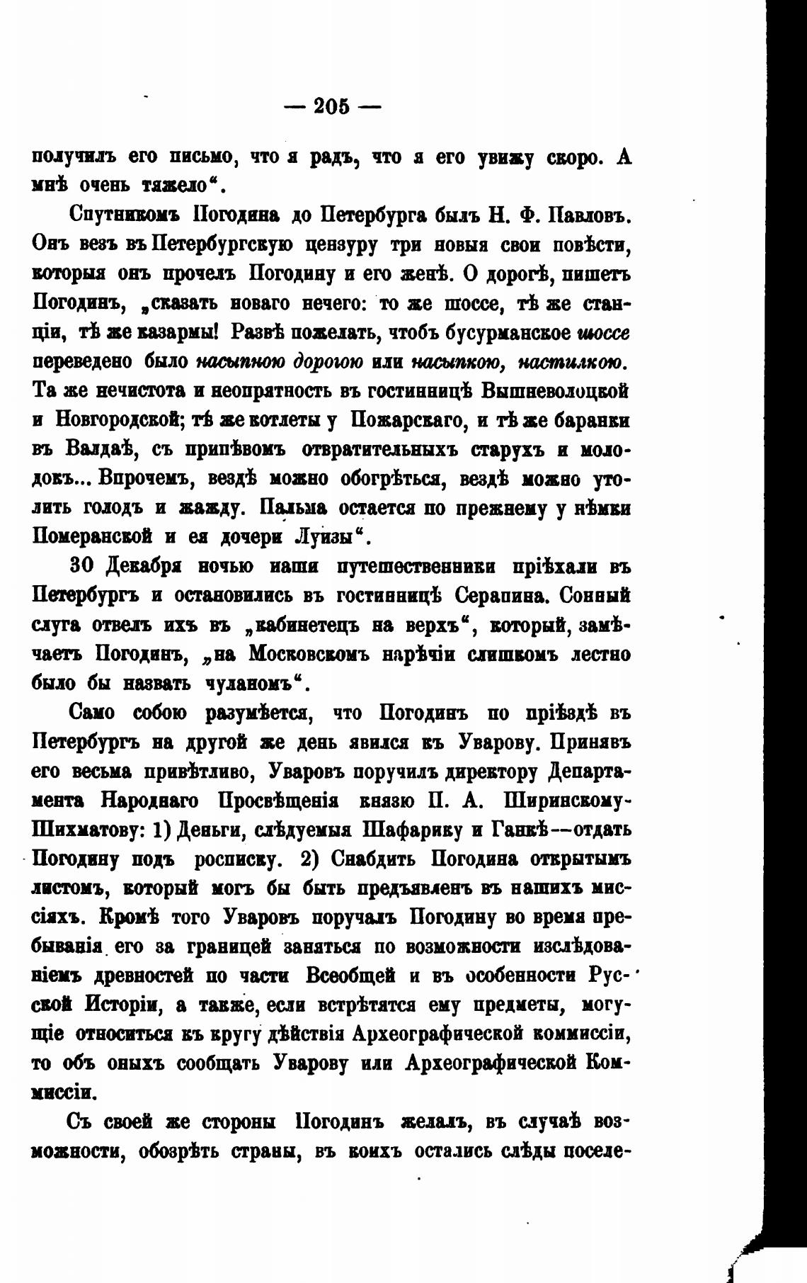 Спутнивомъ Погодина до Петербурга бышь Н. Ф. Павловъ.