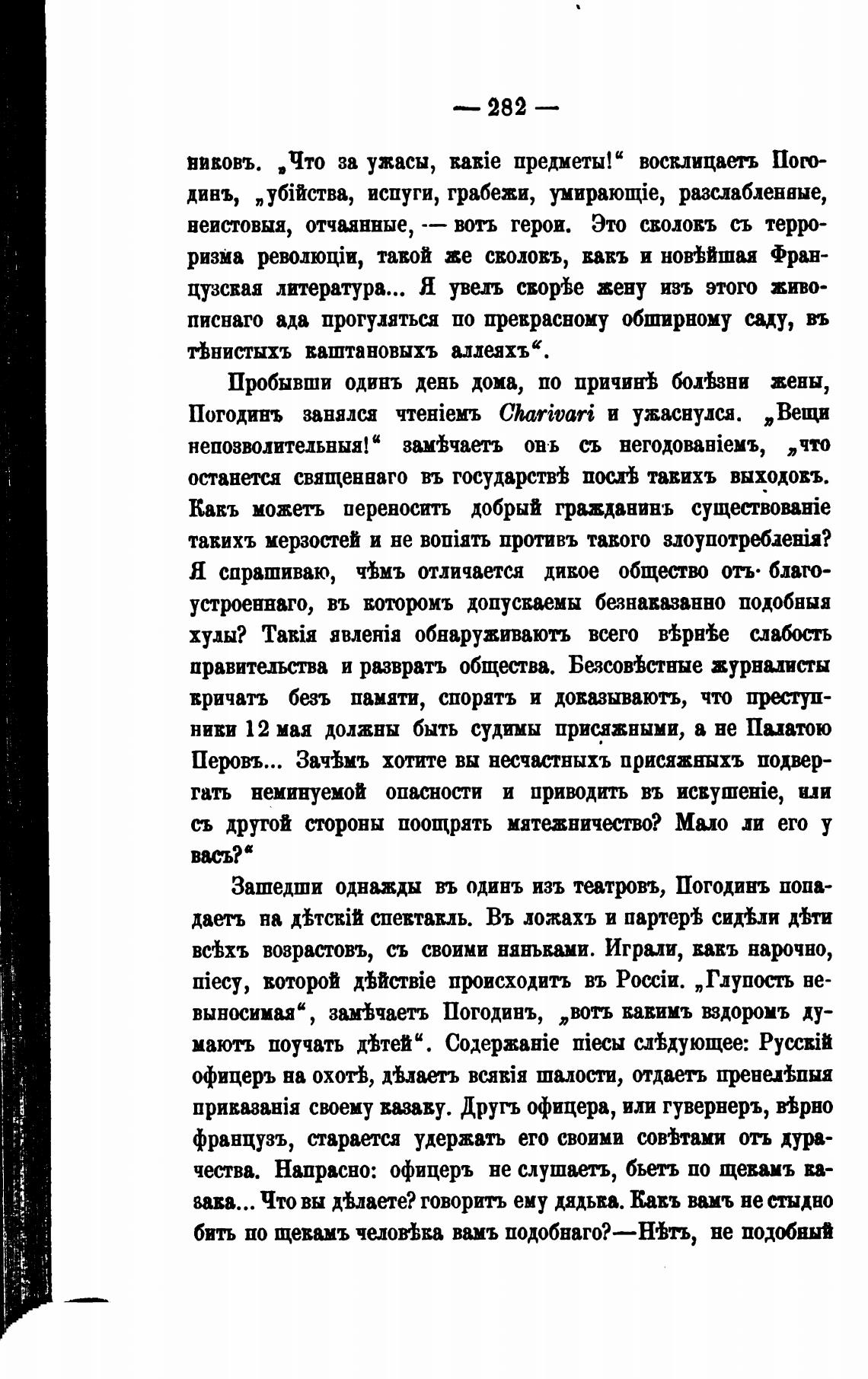 Погодинъ занялся Charivari и ужаснулся. „Вещи