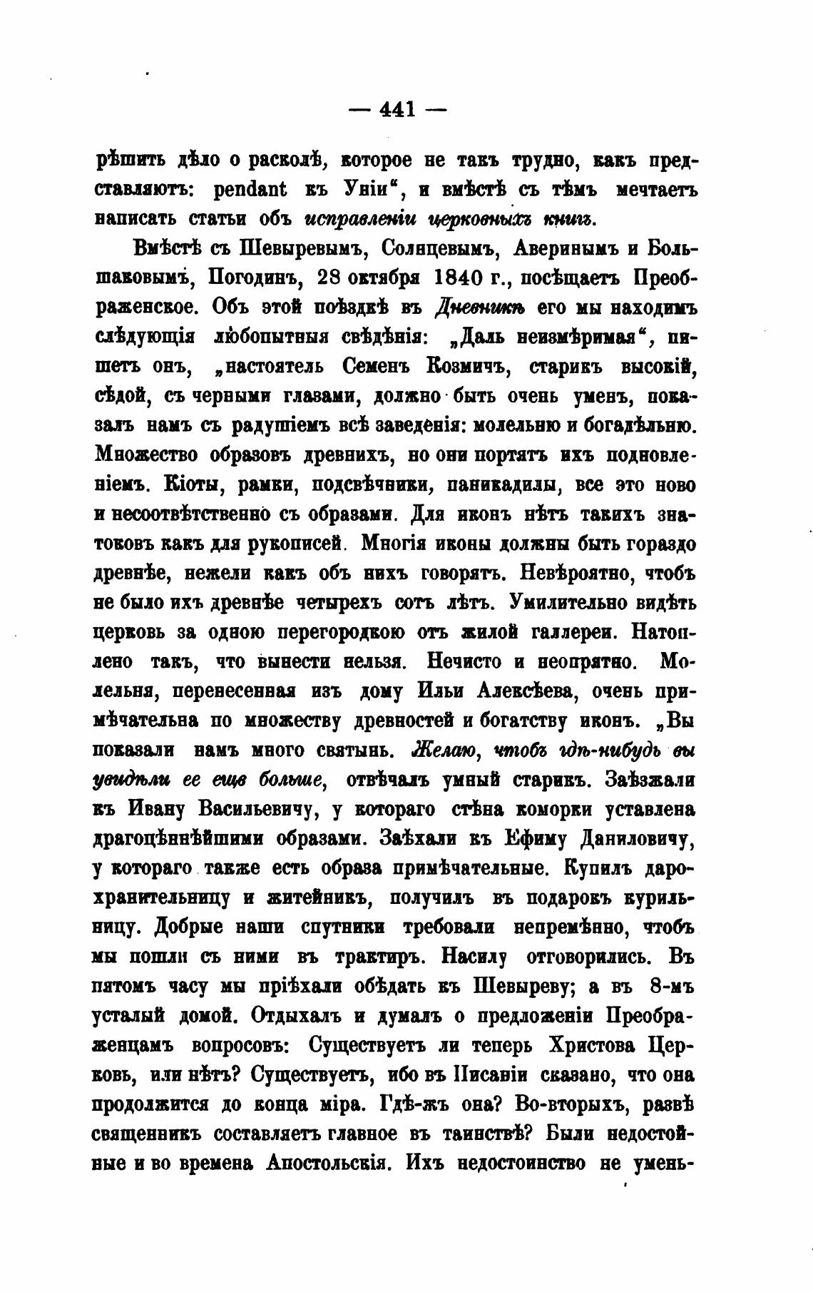шавовымВ, Погодинъ, 28 овтябра 1840 г., посВщаеть Преоб-