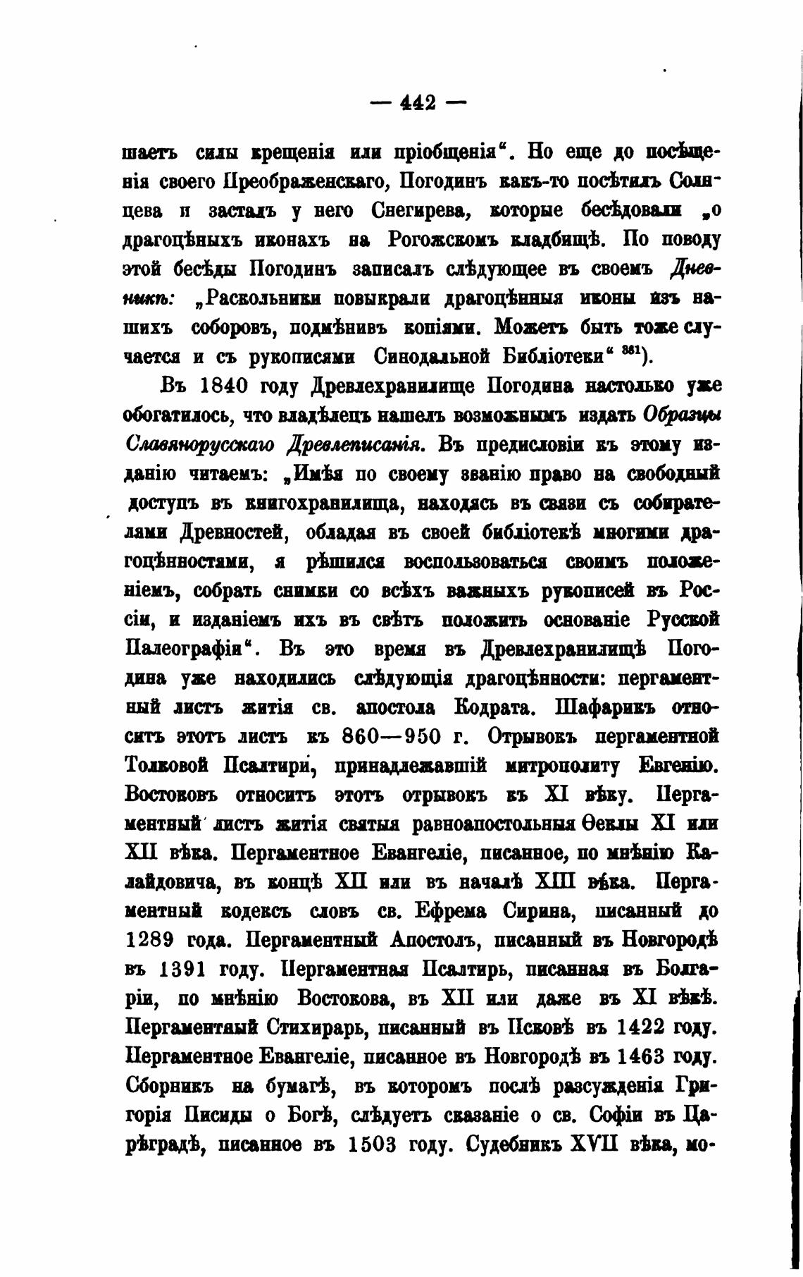 Въ 1840 году Древлехравшище Погодина напольво ухе