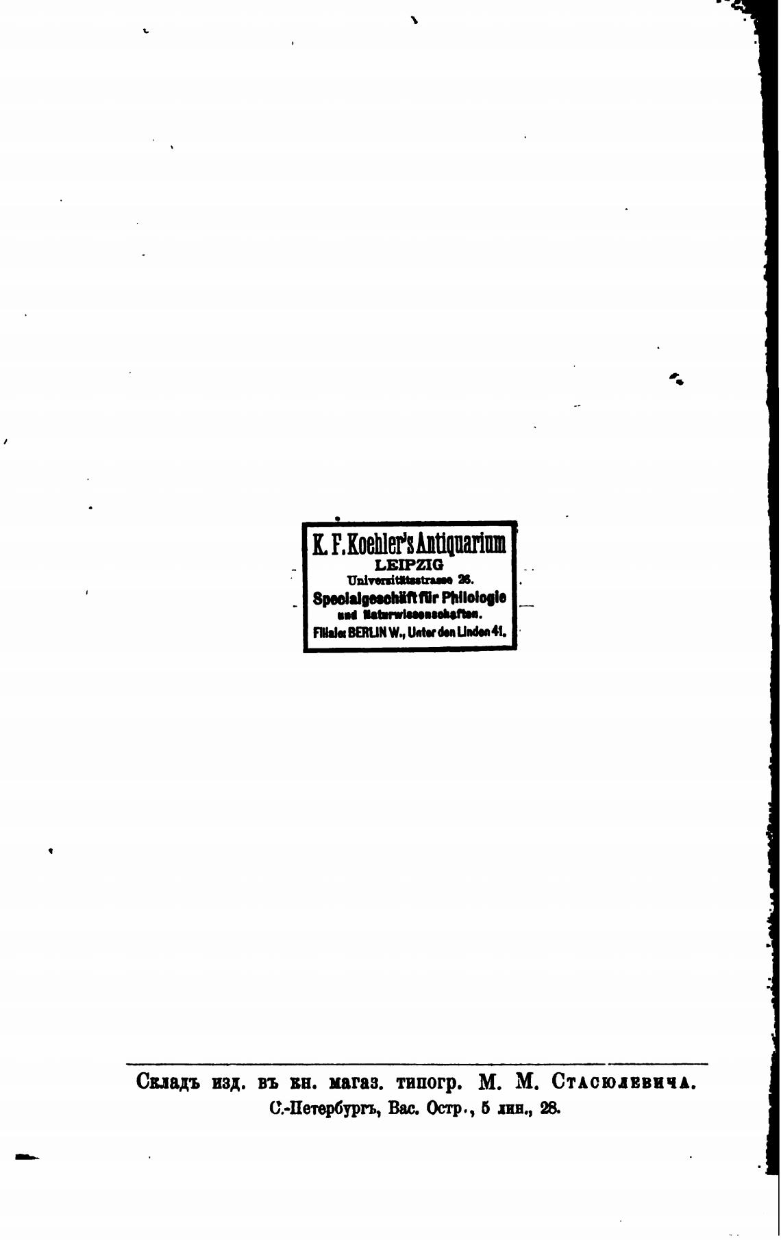 Свладъ изд. въ вв. магаз. типогр. М. М. СТАСЮЛЕВИЧА.