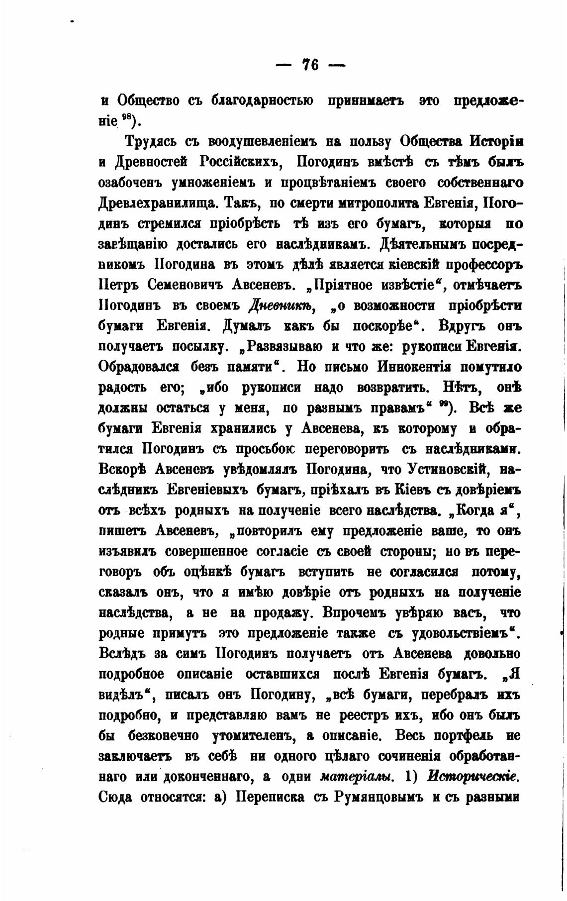 Всвор'Ь Авсеневъ уйдомлялъ Погодина, что на-