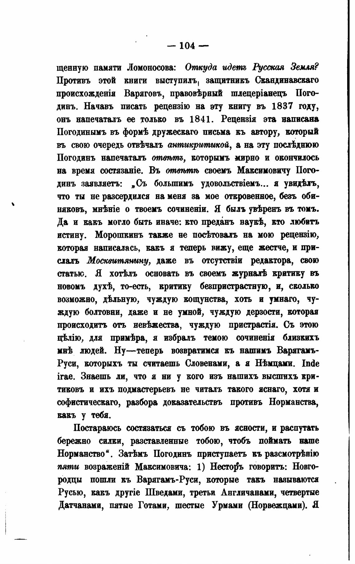 Погодинъ напечаталъ отвљтб, воторымъ мирно и
