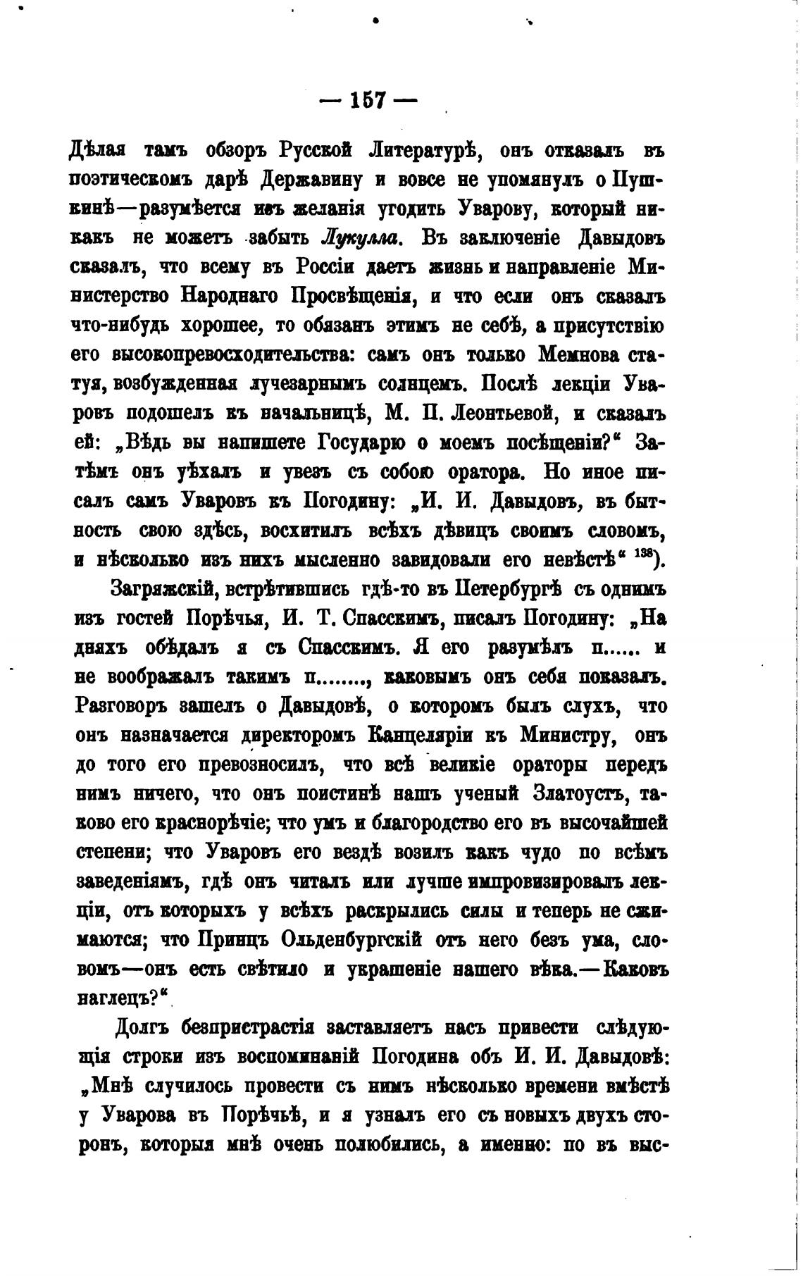 саль с.амъ Уваровъ въ Погодину: „И. И. Давыдовъ, въ быт-