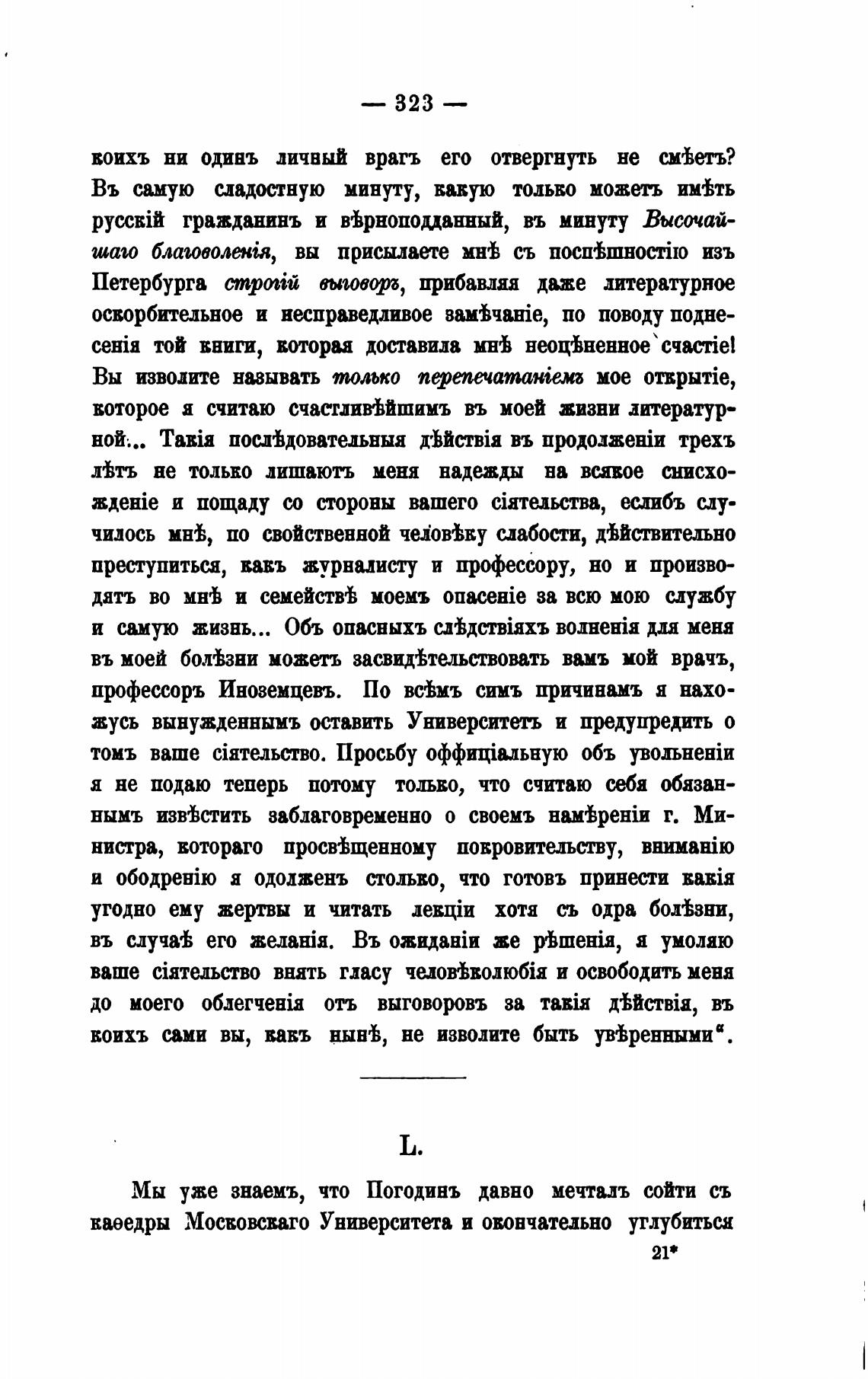 Мы уже знаемъ, что Погодинъ давно мечтвлъ сойти съ