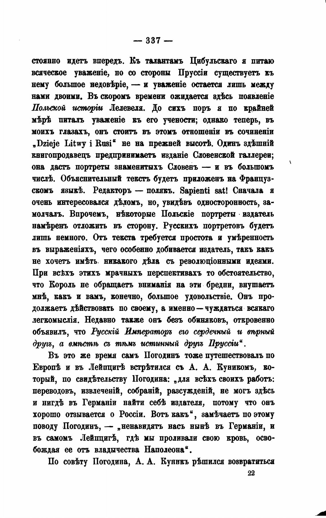 По совВту Погодина, А. А. Кунивъ рВшился возвратитьса