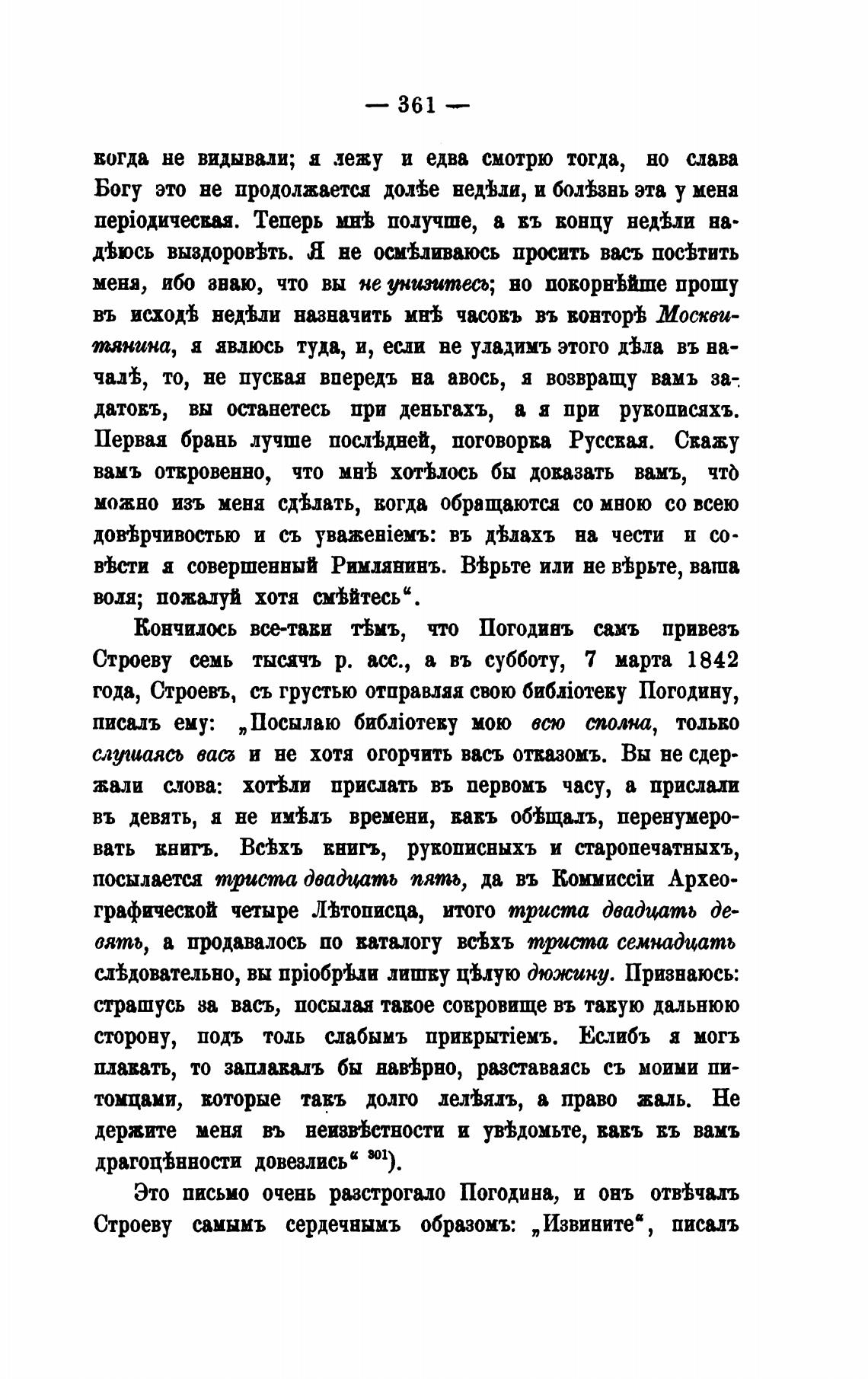года, Строевъ, съ грустью отправляя свою бибјотеву Погодину,