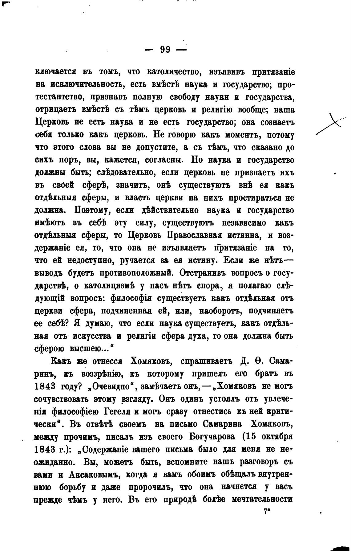 чесвид. Въ отйтЬ своемъ на письмо Самарина Хомавовъ,