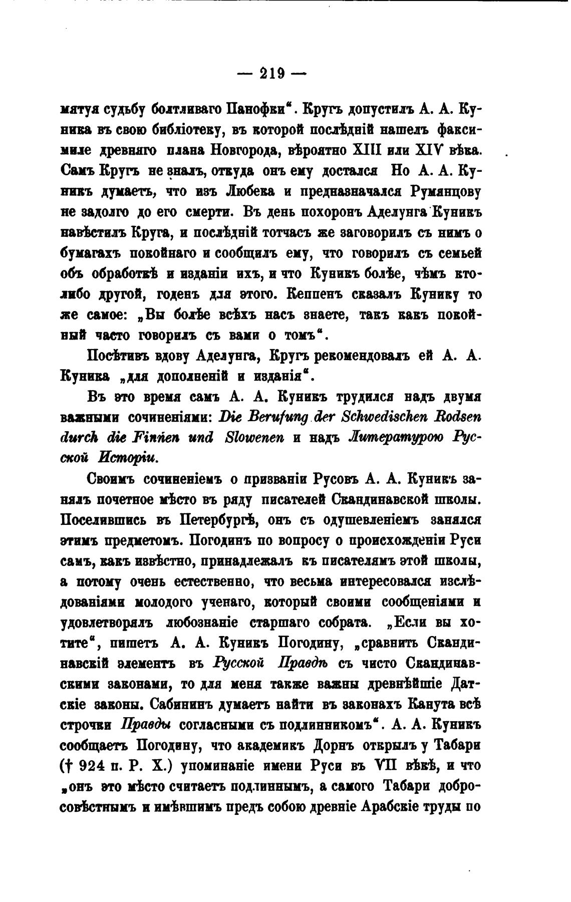 Своимъ о Русогь А. А. Куникъ за-