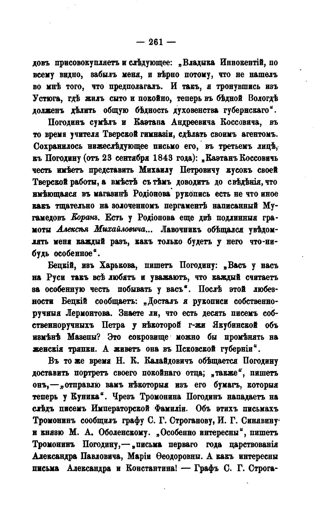 въ Погодину (отъ 23 сентабра 1843 года): „Кавтанъ Коссовичь