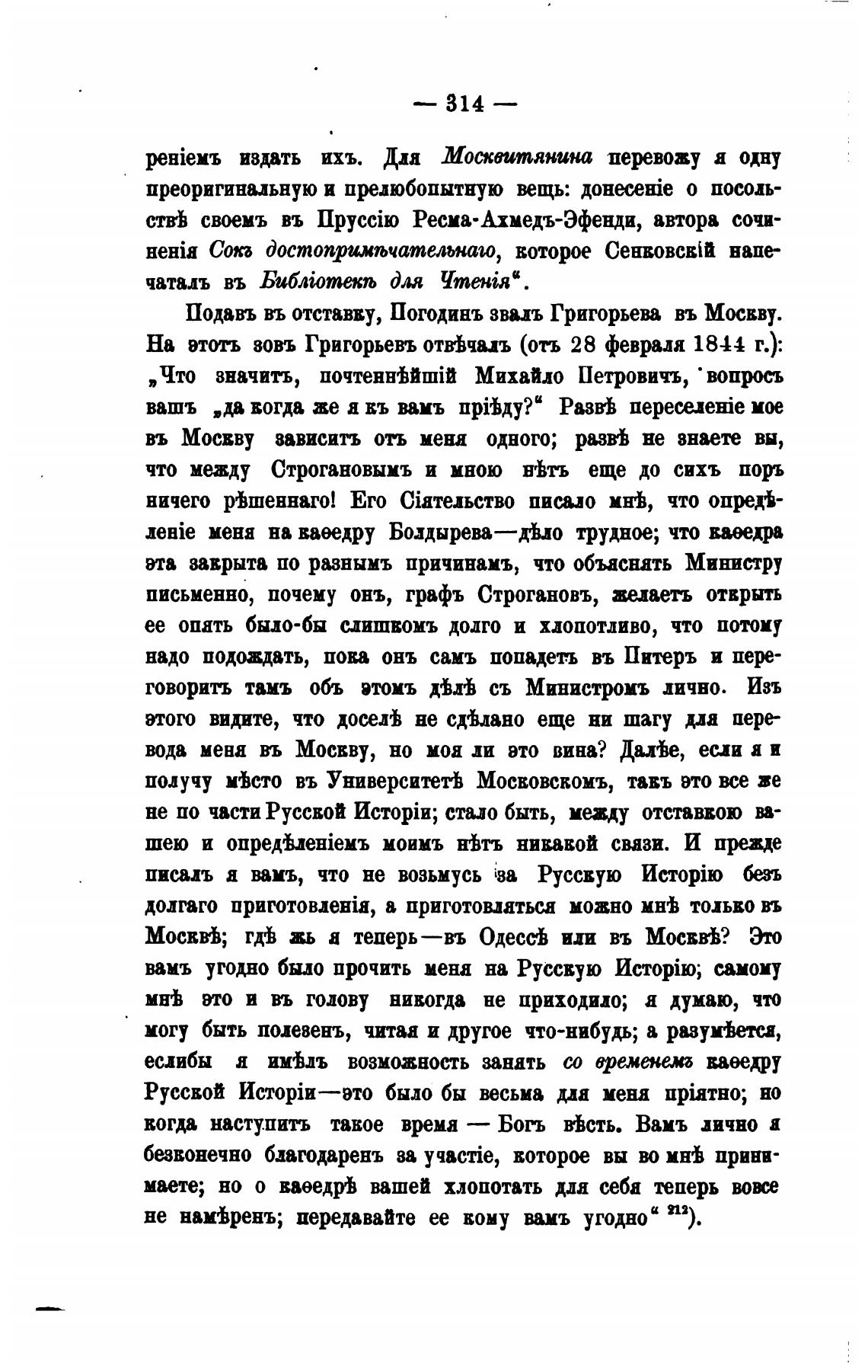 Подавъ въ отставву, Погодинъ звал Григорьева въ Мосвву.