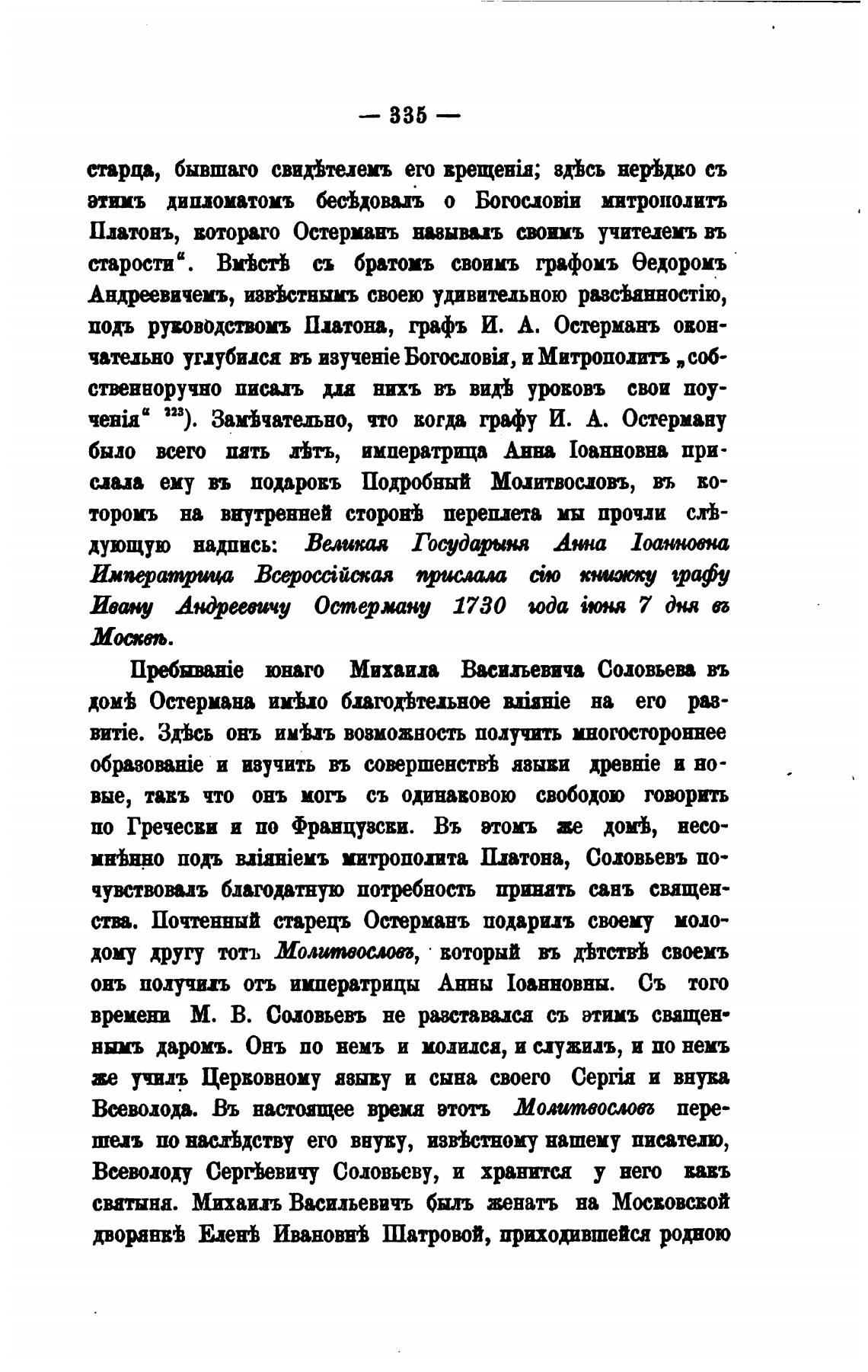 времени М. В. Соловьевъ не равставли съ этимъ сващен•