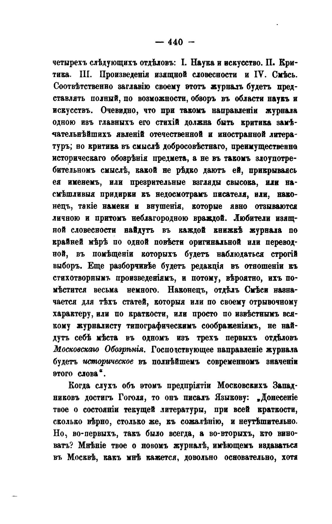 нивовъ достигъ Гоголя, то овь писать Язывову: