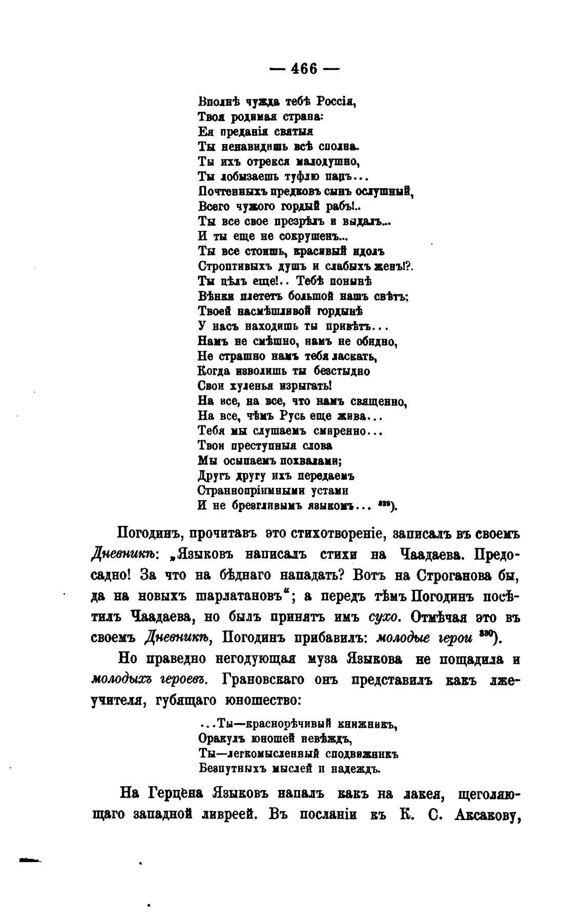 Дневникљ: „Языковъ написалъ стихи на Чаадаева. Предо-