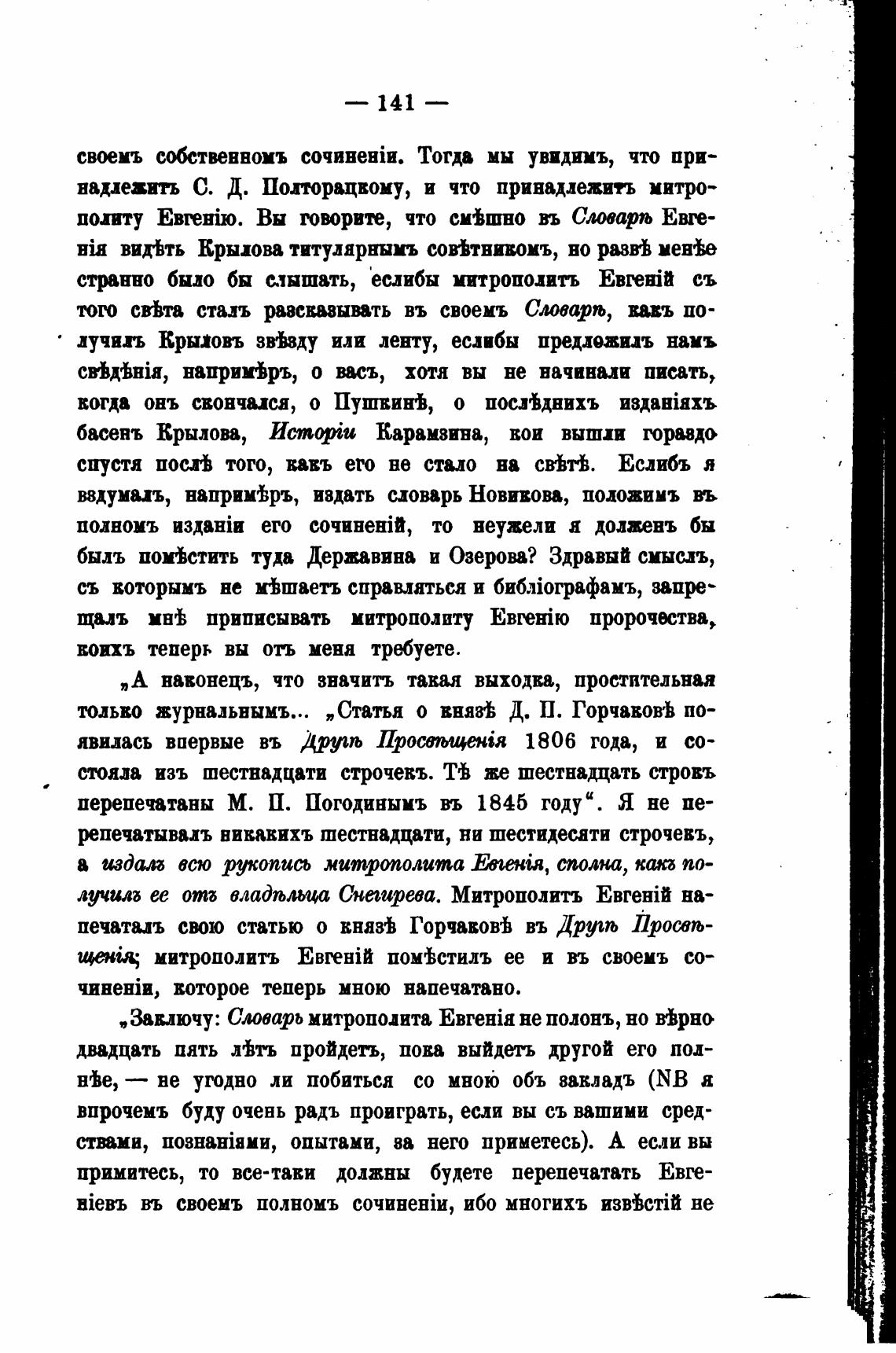 тольво журнальнымъ... „Статья о внять Д. П. Горчавов•Ь по-
