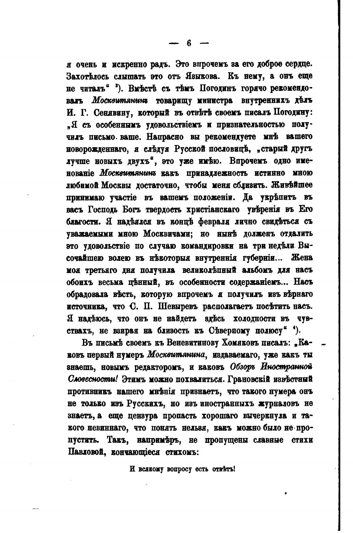 И. Г. Сенявину, воторнй въ отйтЬ пиалъ Погодину:
