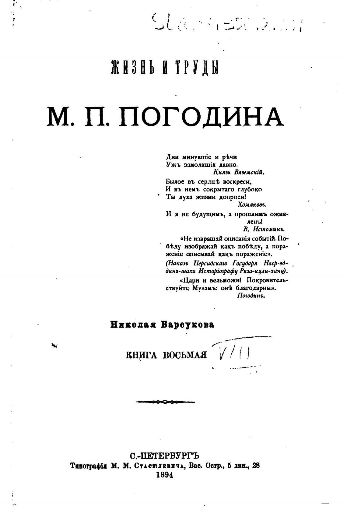 Типогрф[а М. М. Стлетхввичд, Вас. ()стр., 5 линч