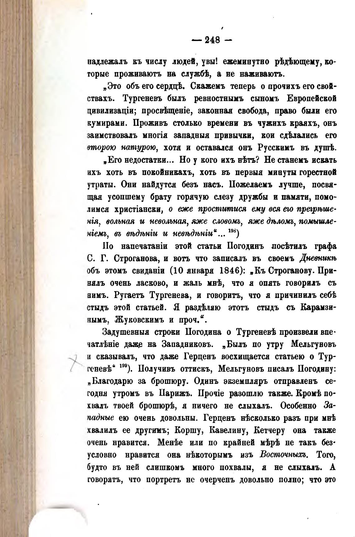 Задушевныя строки Погодина о Тургеневв произвели впе•