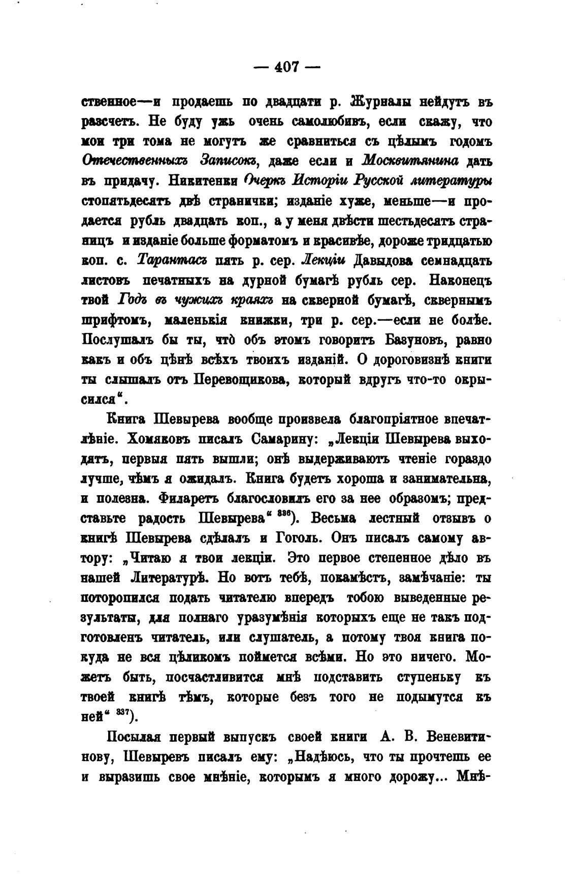 BHie. Хомавовъ писать Самарину: „Левф Шевырева выхо-