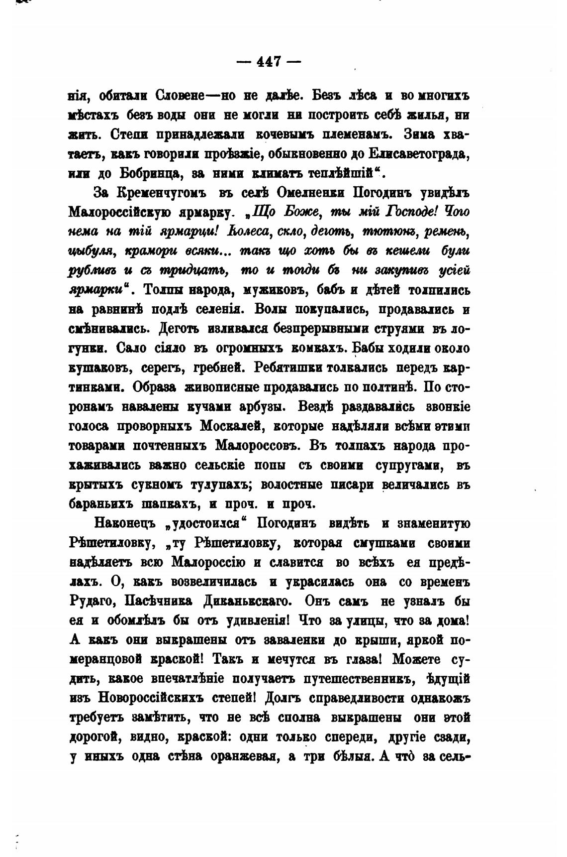 За Кременчугомъ вь сей Омелеави Погодинъ увихЬлъ