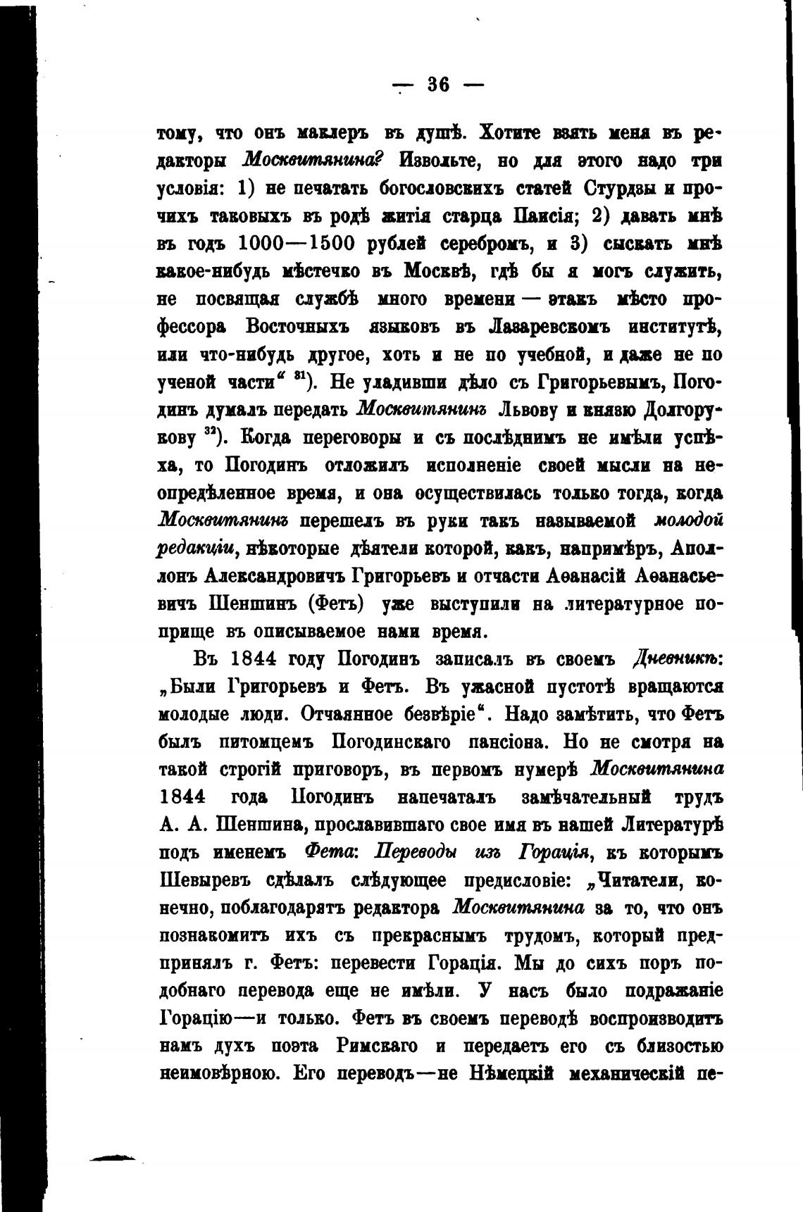 „Были Григорьевъ и Фетв. Въ ужасной пустой вращаютса