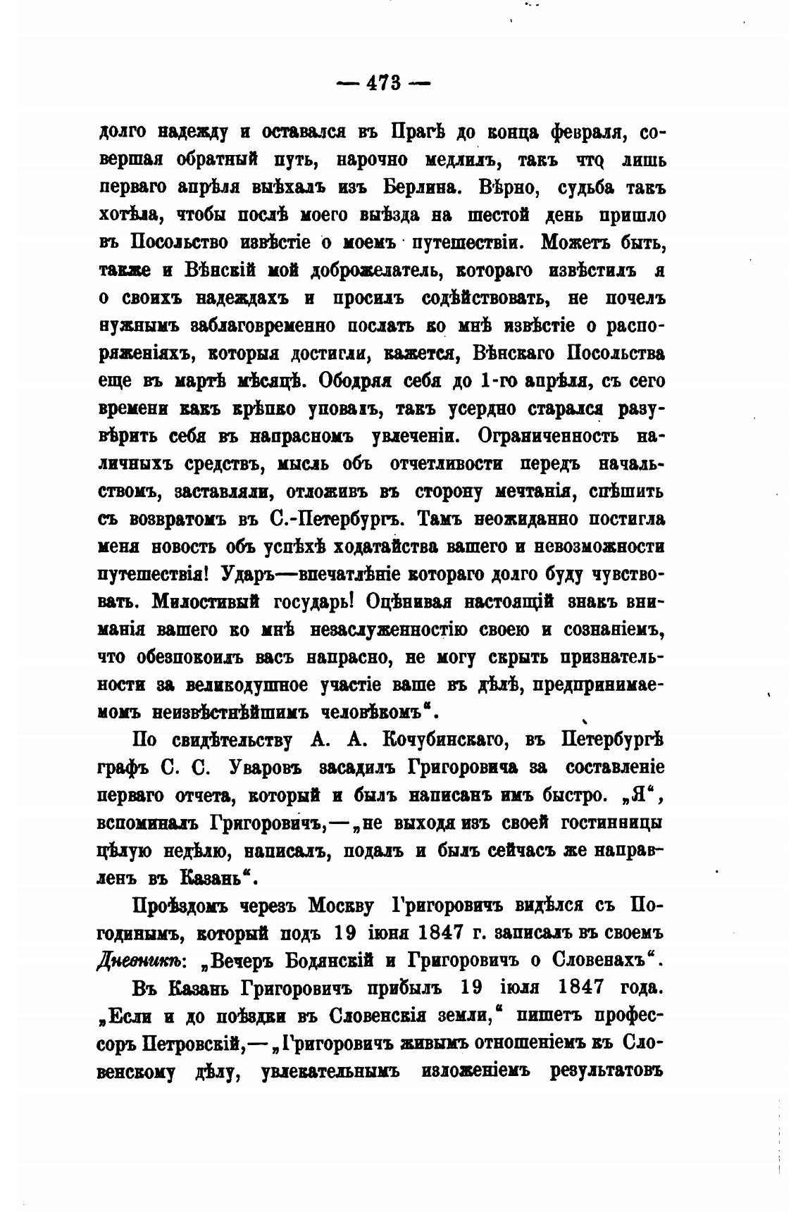 Въ К.азань Григоровичъ прибыль 19 1847 года.