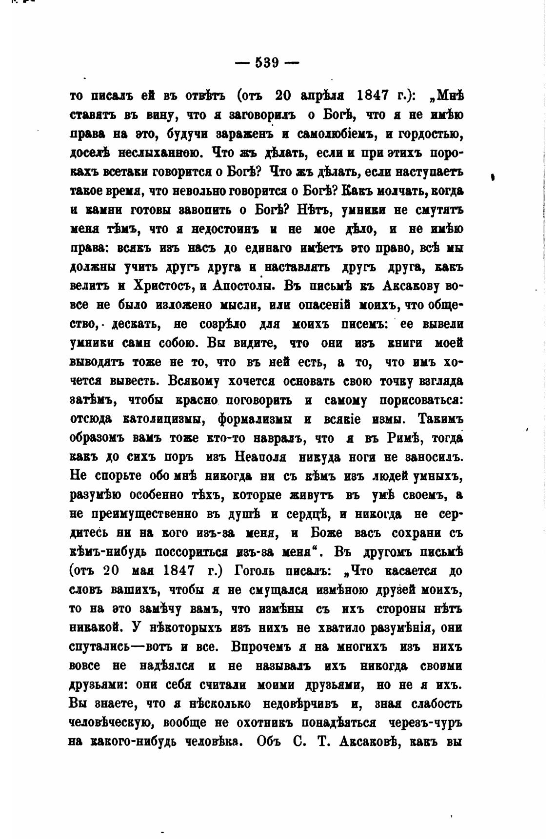 (отъ 20 маа 1847 г.) Гоголь писадъ: „Что васаети до