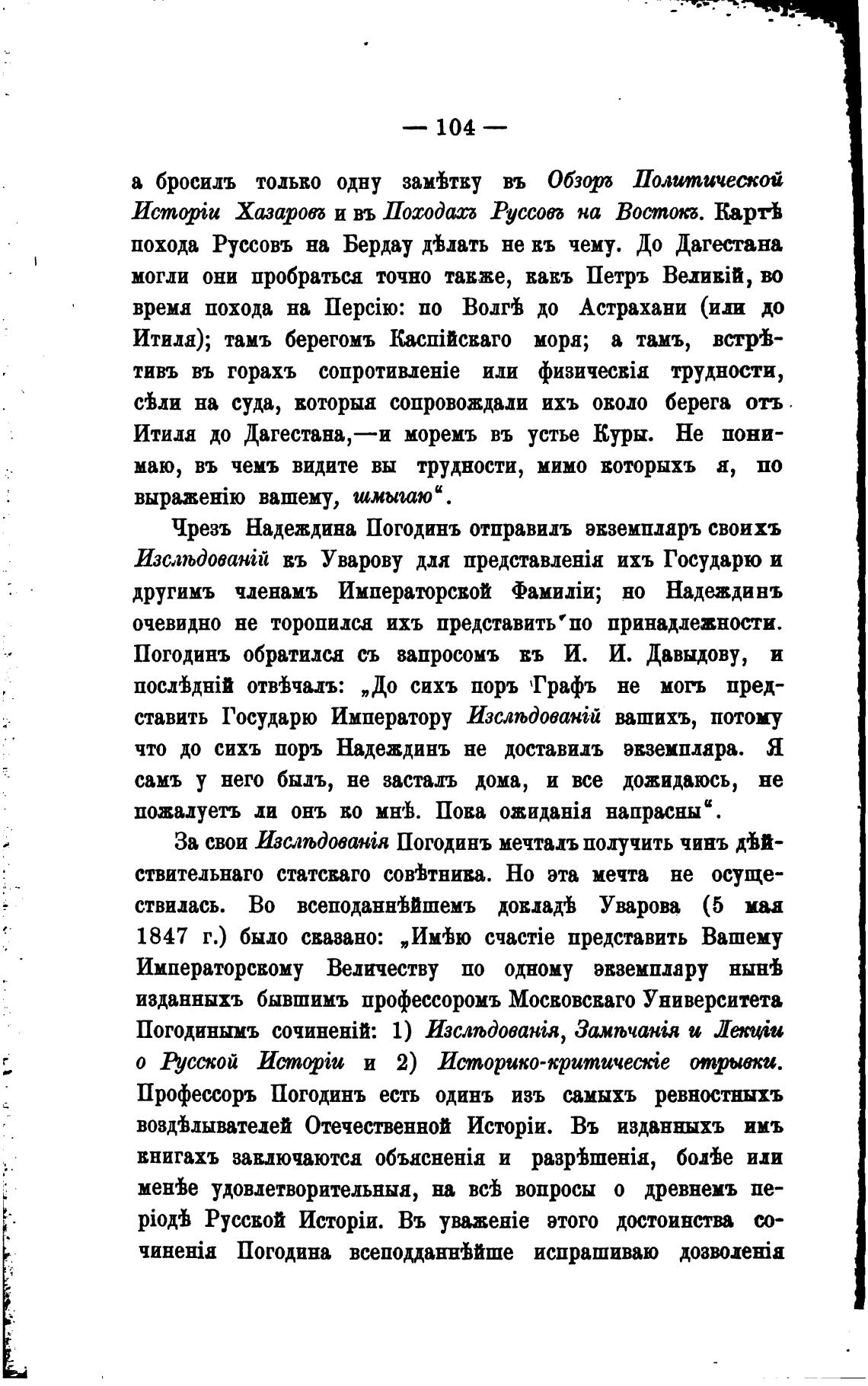 Погодинъ обратился съ вапросомъ въ И. И. Давыдову, и