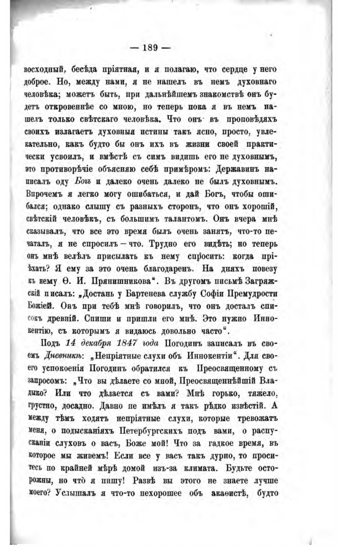 Подъ 14 Декабря 1847 года Погодинъ заиисалъ въ сво-