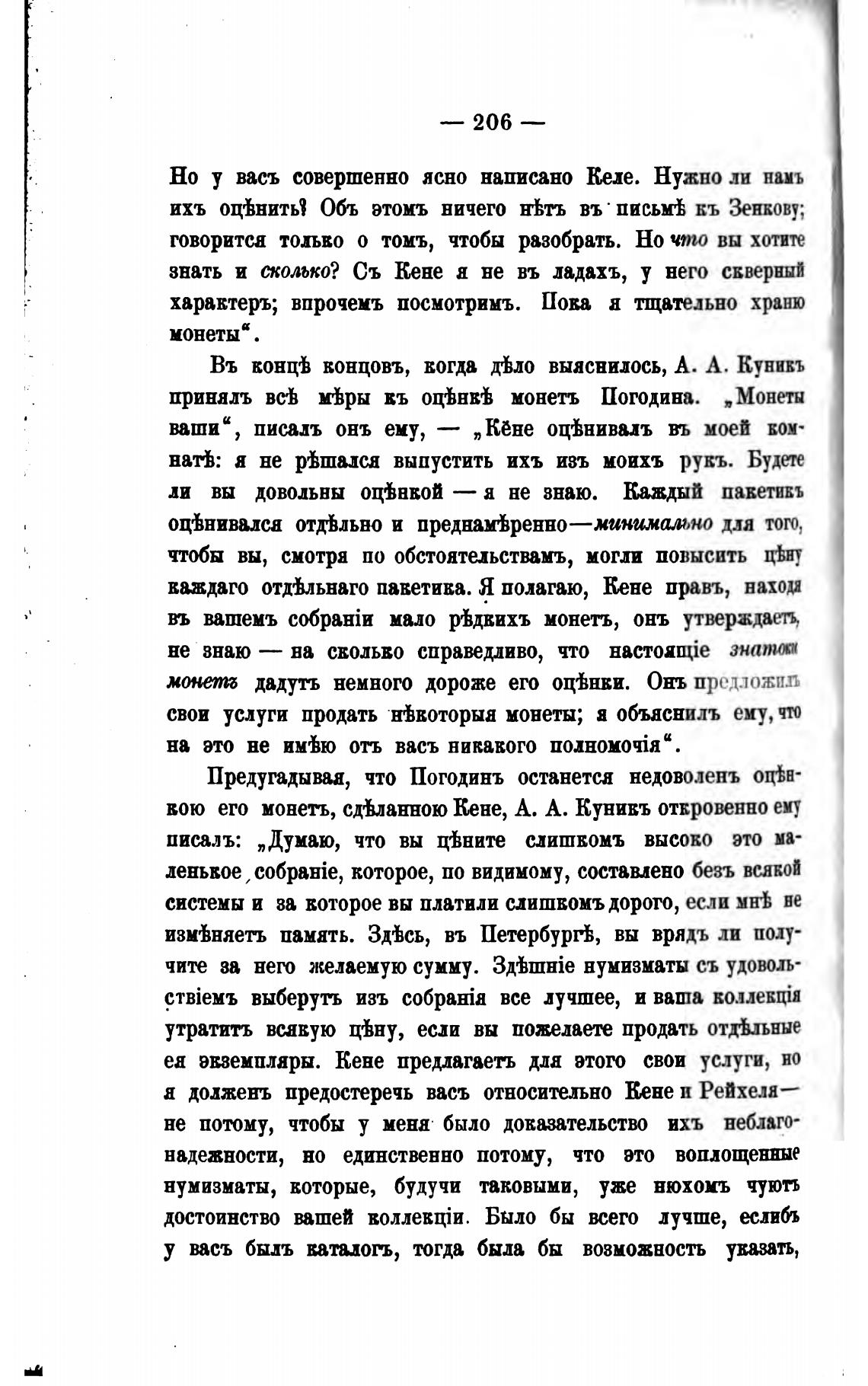 вою его монеть, сдьанною Кене, А. А. Кунивъ отвровенно ему