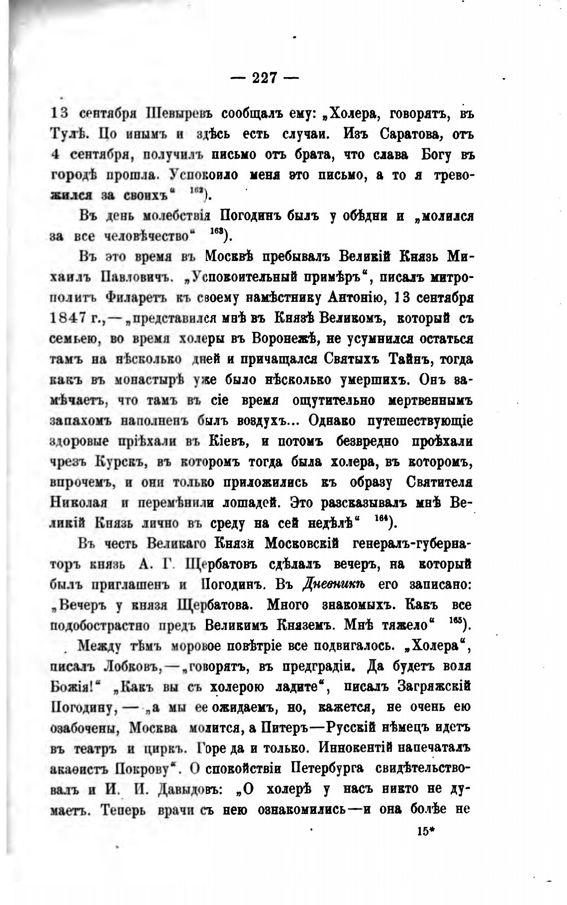 13 сентября Шевыревъ сообщалъ ему: „Холера, говоратъ, въ