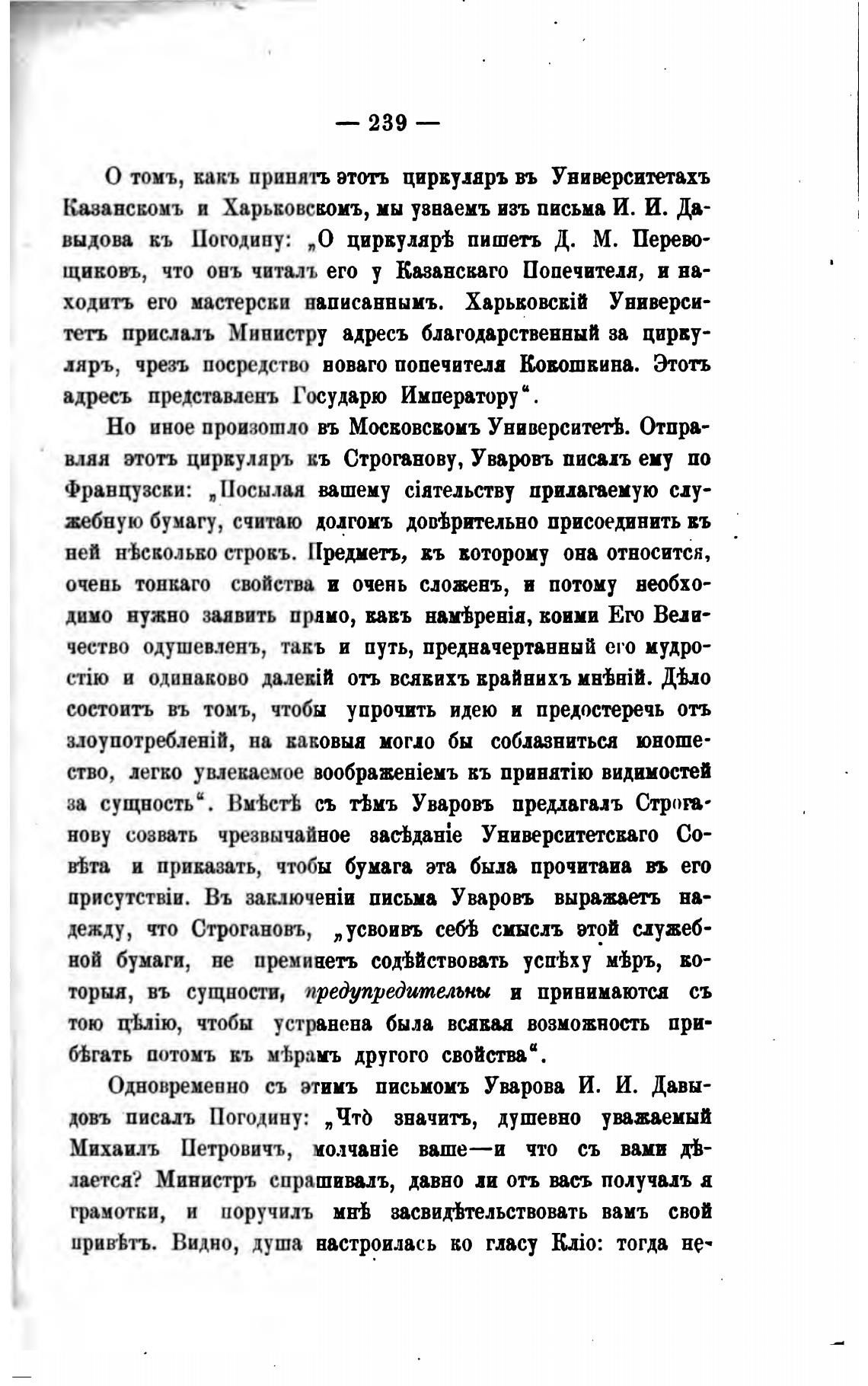 вляя этоть циркуляръ въ Строганову, Уваровъ писыъ ему по