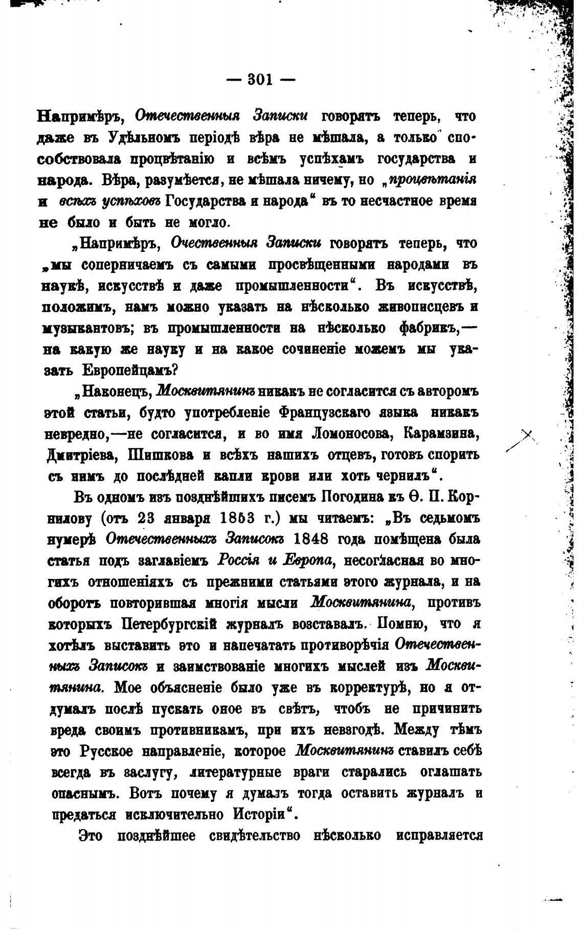 Въ одномъ изъ поздн%йшихъ писемъ Погодина въ Э. П. Кор-