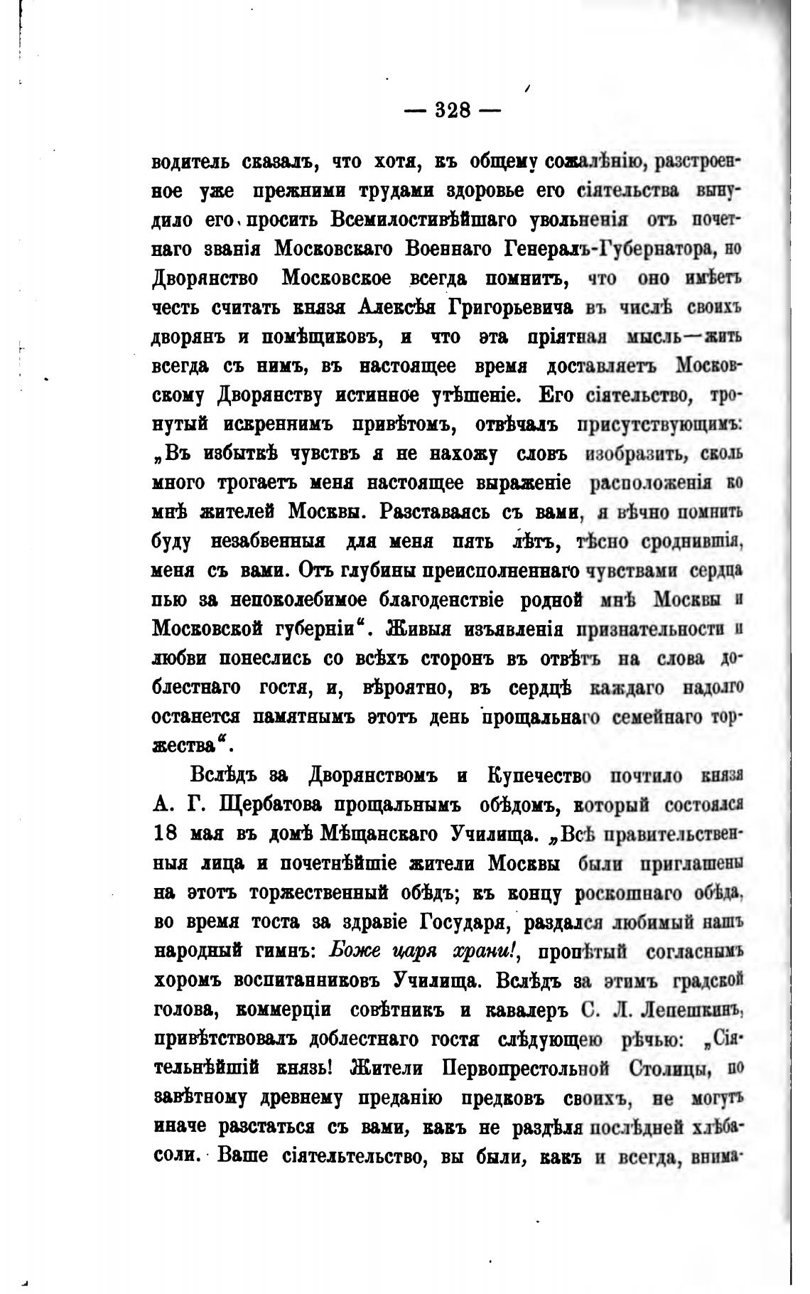 А. Г. Щербатова прощальнымъ об'Ьдомъ, ЕОТорыЙ состояли
