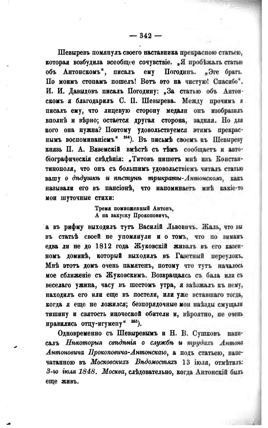 И. И. Давыдовъ писалъ Погодину: „За статью объ Антон-